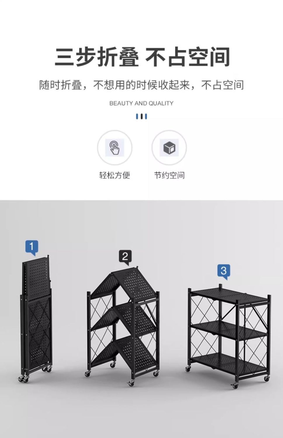 [설치가 필요 없는 1초 접이식 수납선반] - 블랙 3단 길이 70