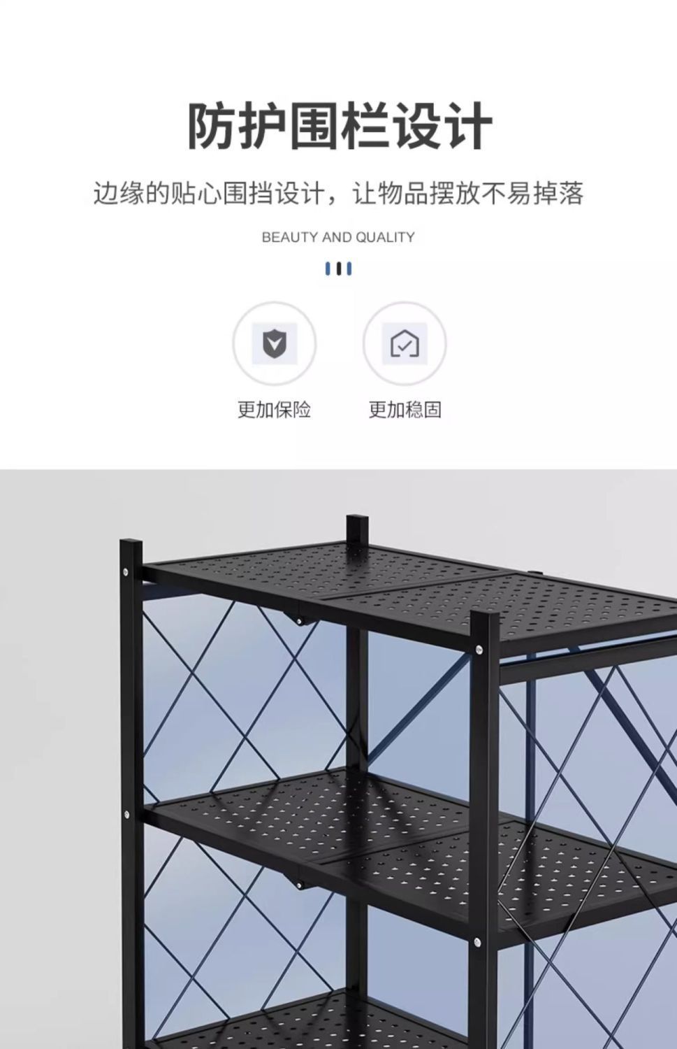 [설치가 필요 없는 1초 접이식 수납선반] - 블랙 4단 길이 70