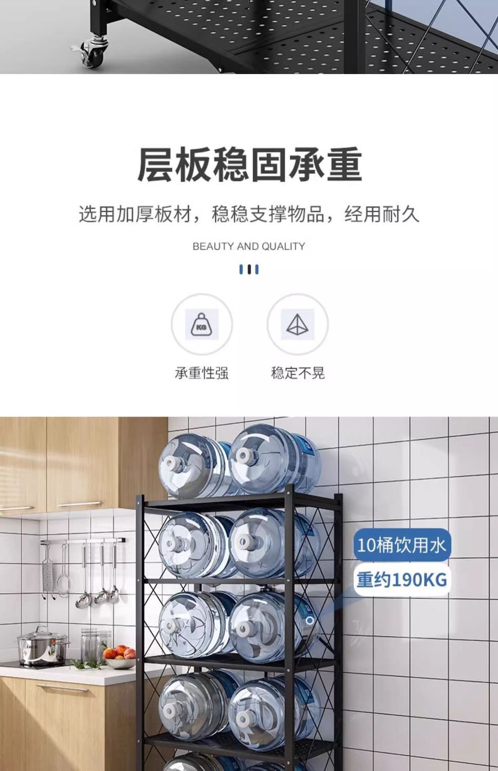[설치가 필요 없는 1초 접이식 수납선반] - 블랙 5단 길이 100