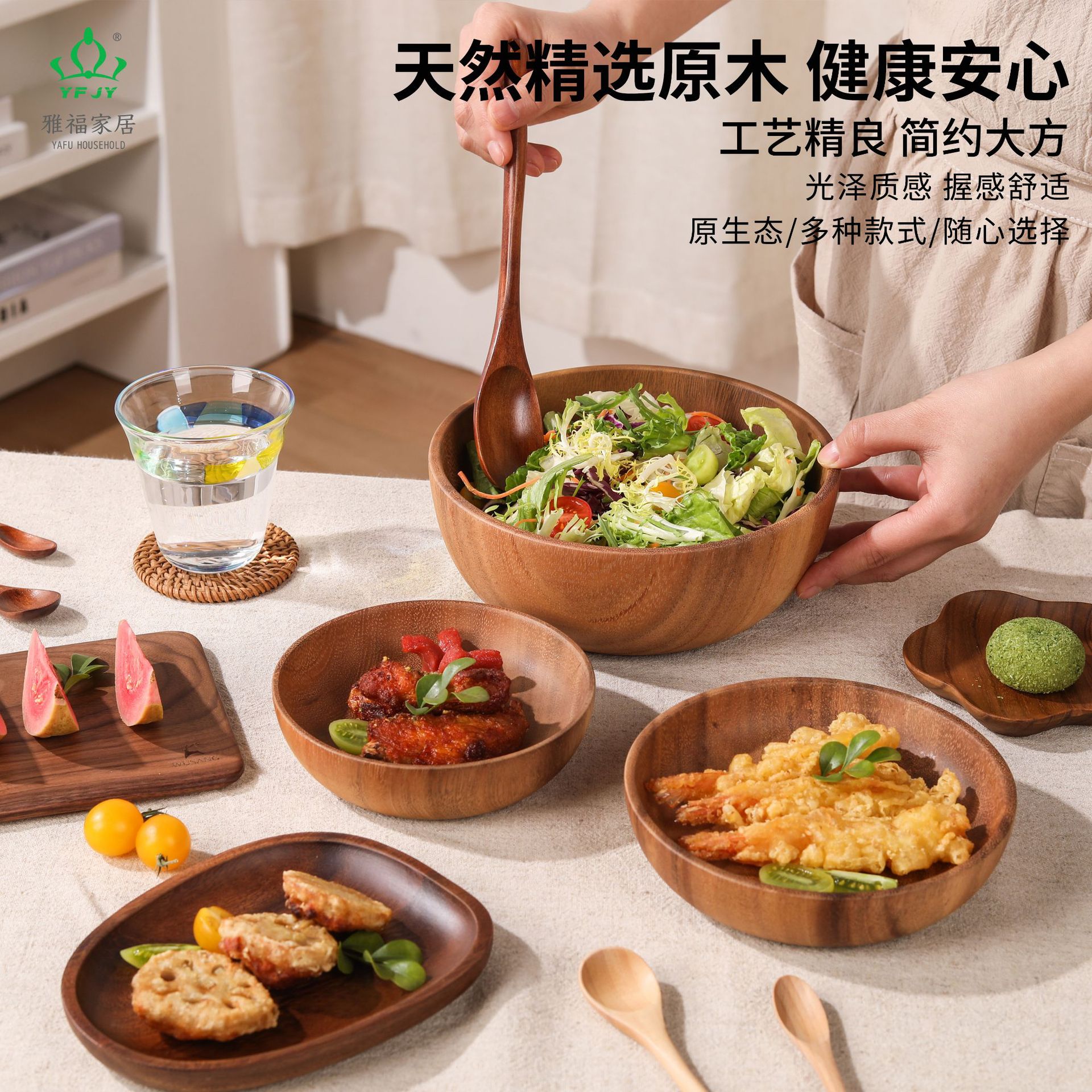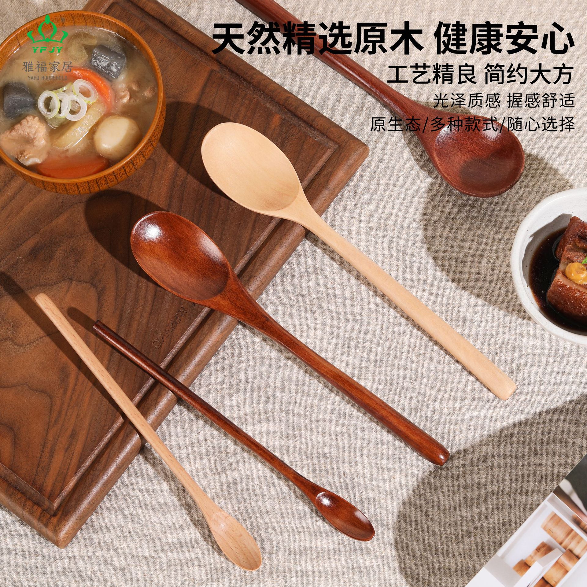 YFJY 주말 한국 요리 23.5CM 긴 손잡이 나무 스푼 20CM 꿀 믹싱 스푼 티 스푼 난무 연꽃 나무