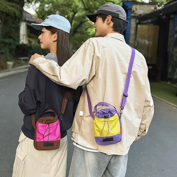스포츠 크로스백, 여성용 아웃도어 드로스트링 버킷 스몰백, 남녀공용 신형 경량 휴대폰 가방, 트렌디 브랜드 경량