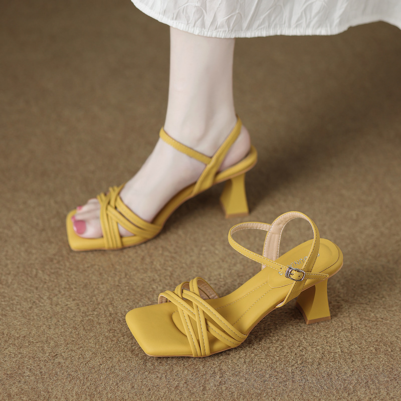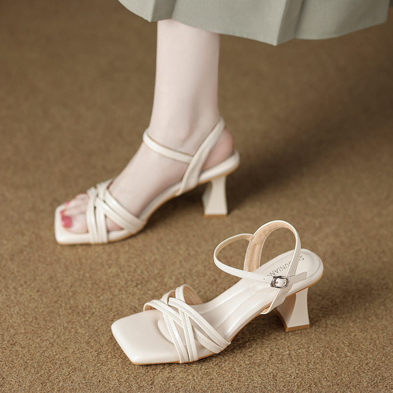 322-1 양가죽 버전 피곤하지 않은 발 스트랩 샌들 여성 2025 여름 신작 패션 실버 하이힐