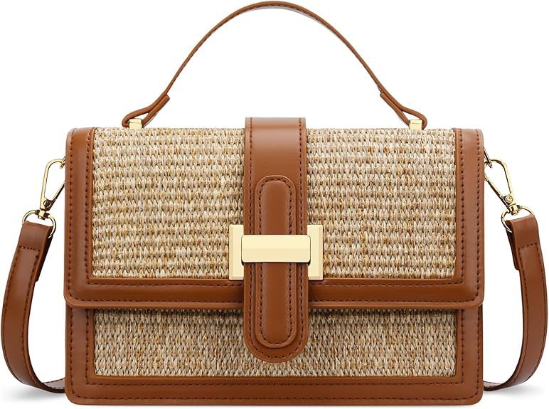 아마존의 새로운 여성용 짠 작은 사각형 가방, 심플하고 고급스러운 원 숄더 크로스백, 비치백, 밀짚 가방, 대나무 가방