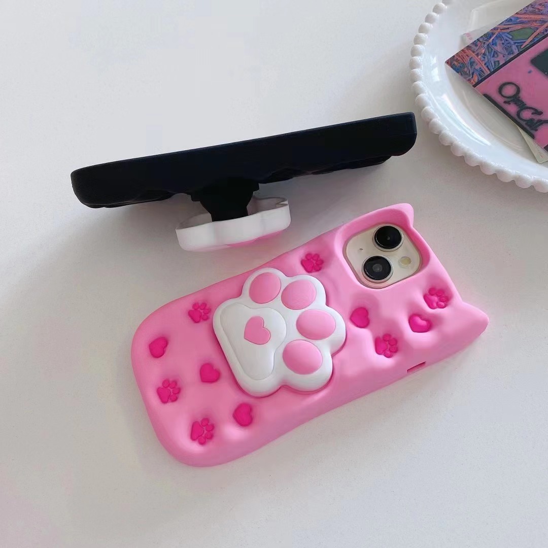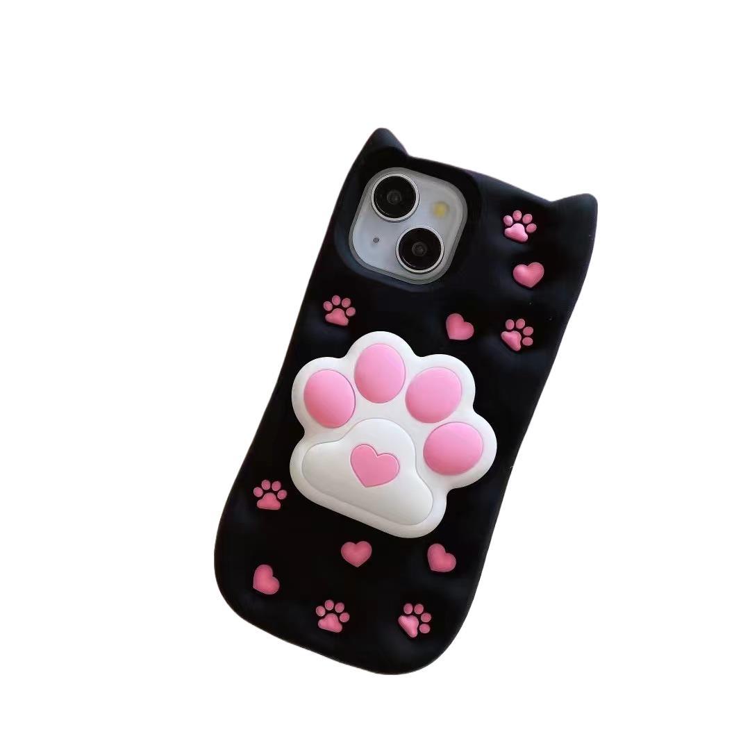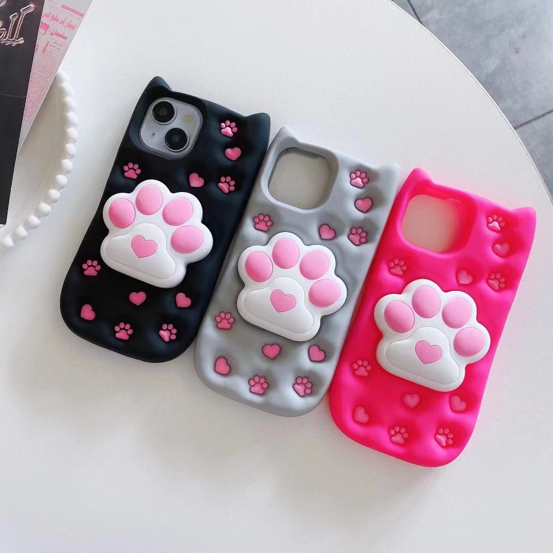 Apple 16promax 고양이 발 사랑 귀여운 만화 고양이 귀 실리콘 입체 스탠드 휴대 전화 케이스에 적합
