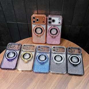 适用iPhone17手机壳渐变闪粉磁吸支架苹果16闪钻镜头膜防摔保护套