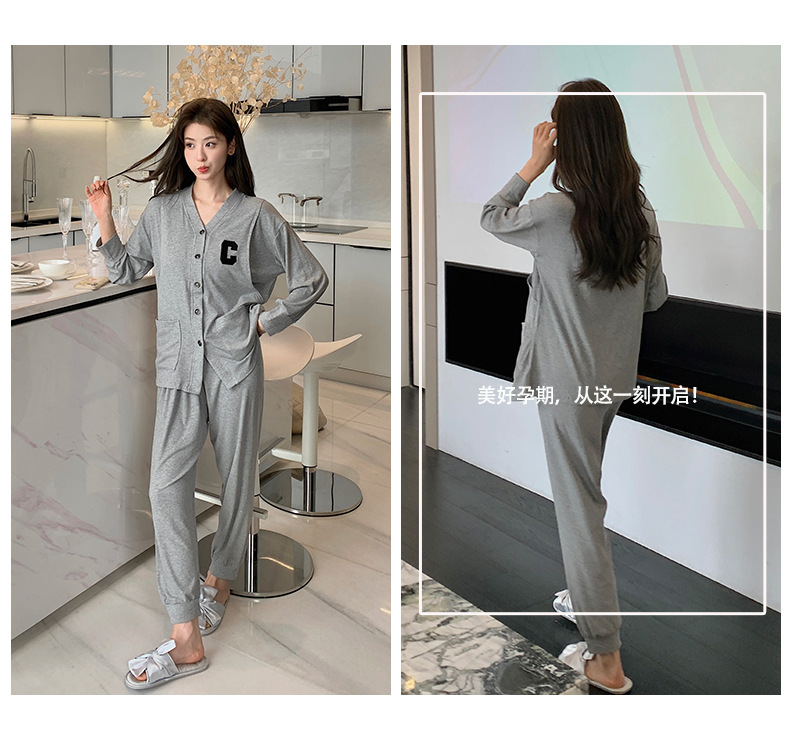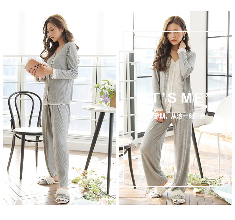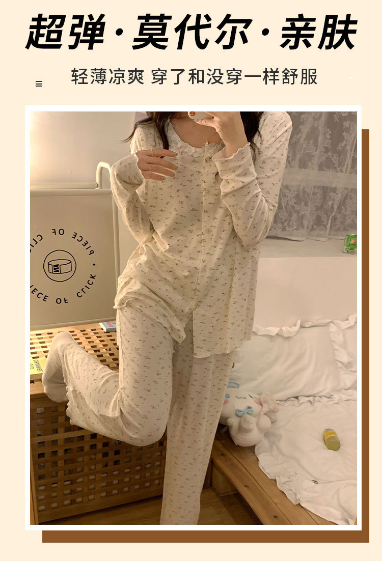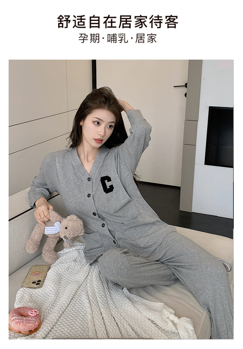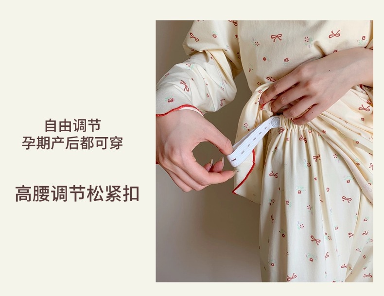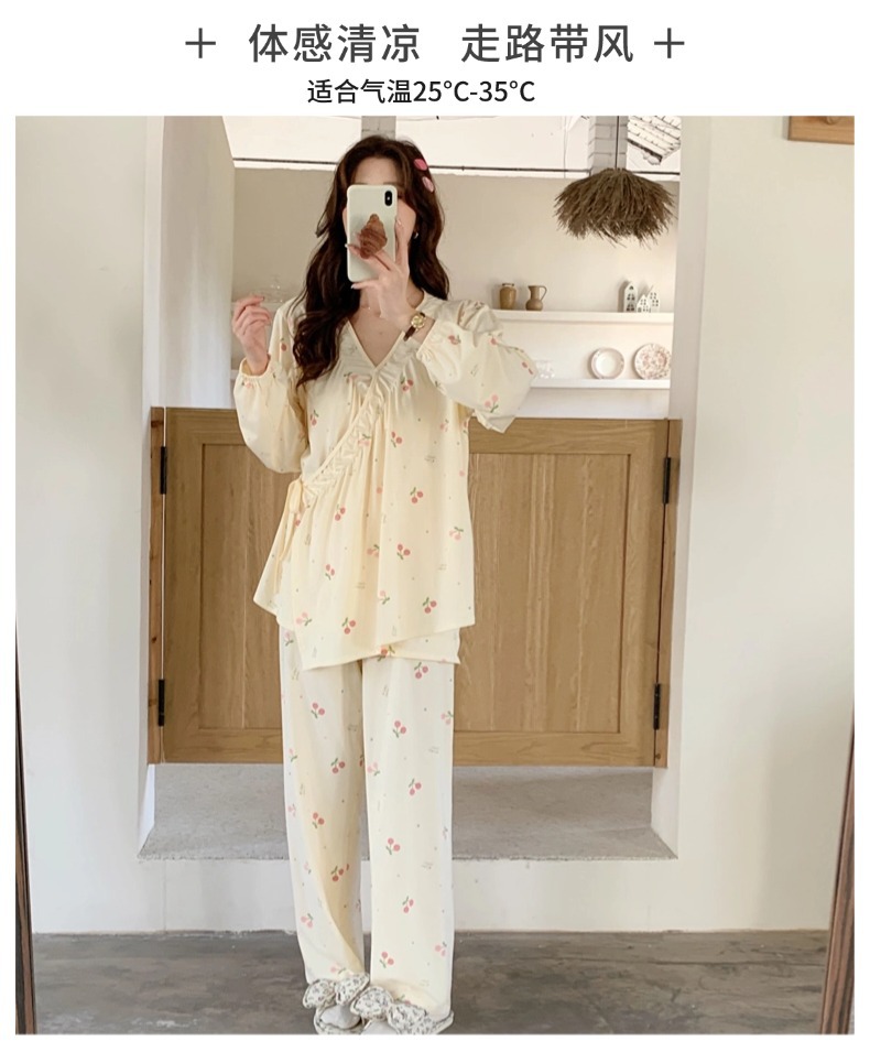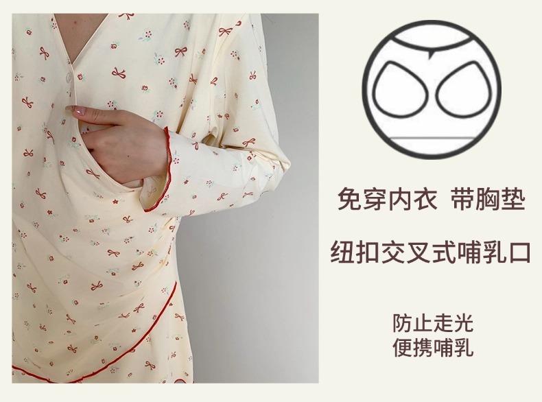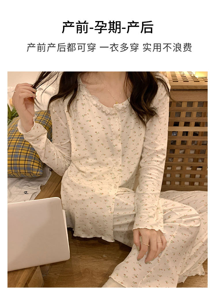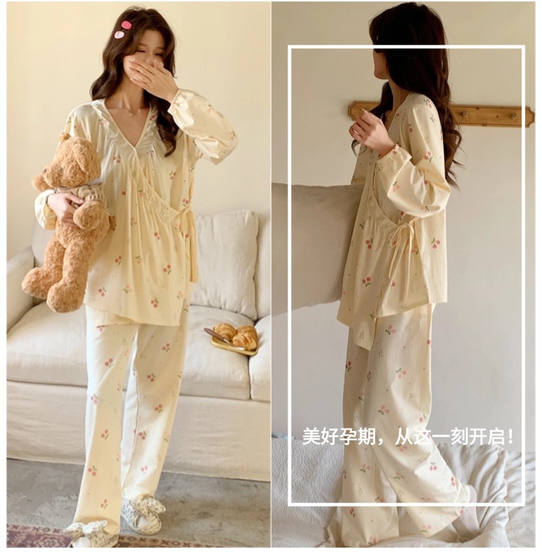 모달 산후복, 수유복, 홈복, 봄, 여름, 가을 얇고 귀엽고 달콤한 스타일의 임산부 잠옷 2종 세트