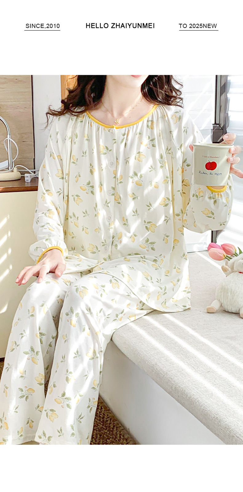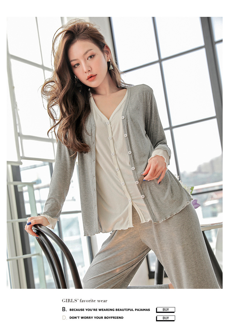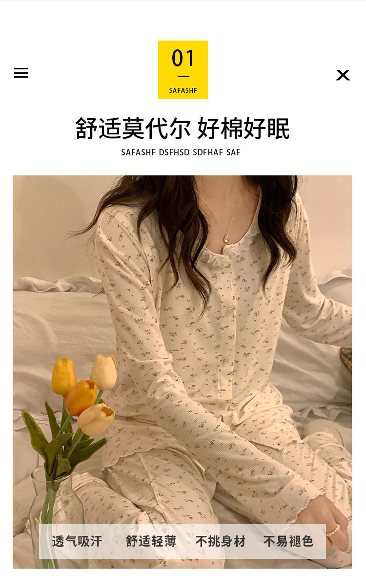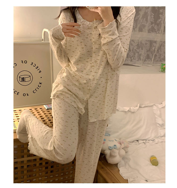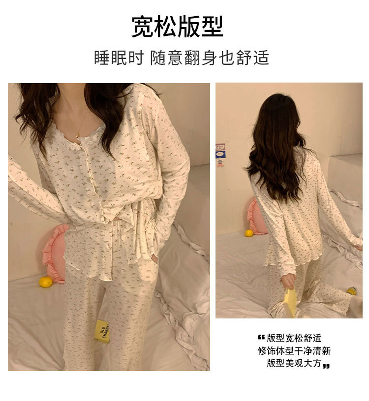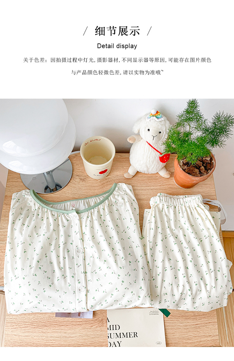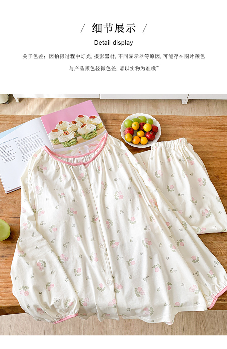 모달 산후복, 수유복, 홈복, 봄, 여름, 가을 얇고 귀엽고 달콤한 스타일의 임산부 잠옷 2종 세트