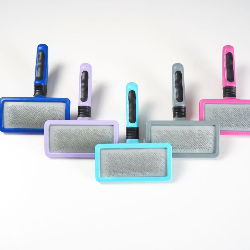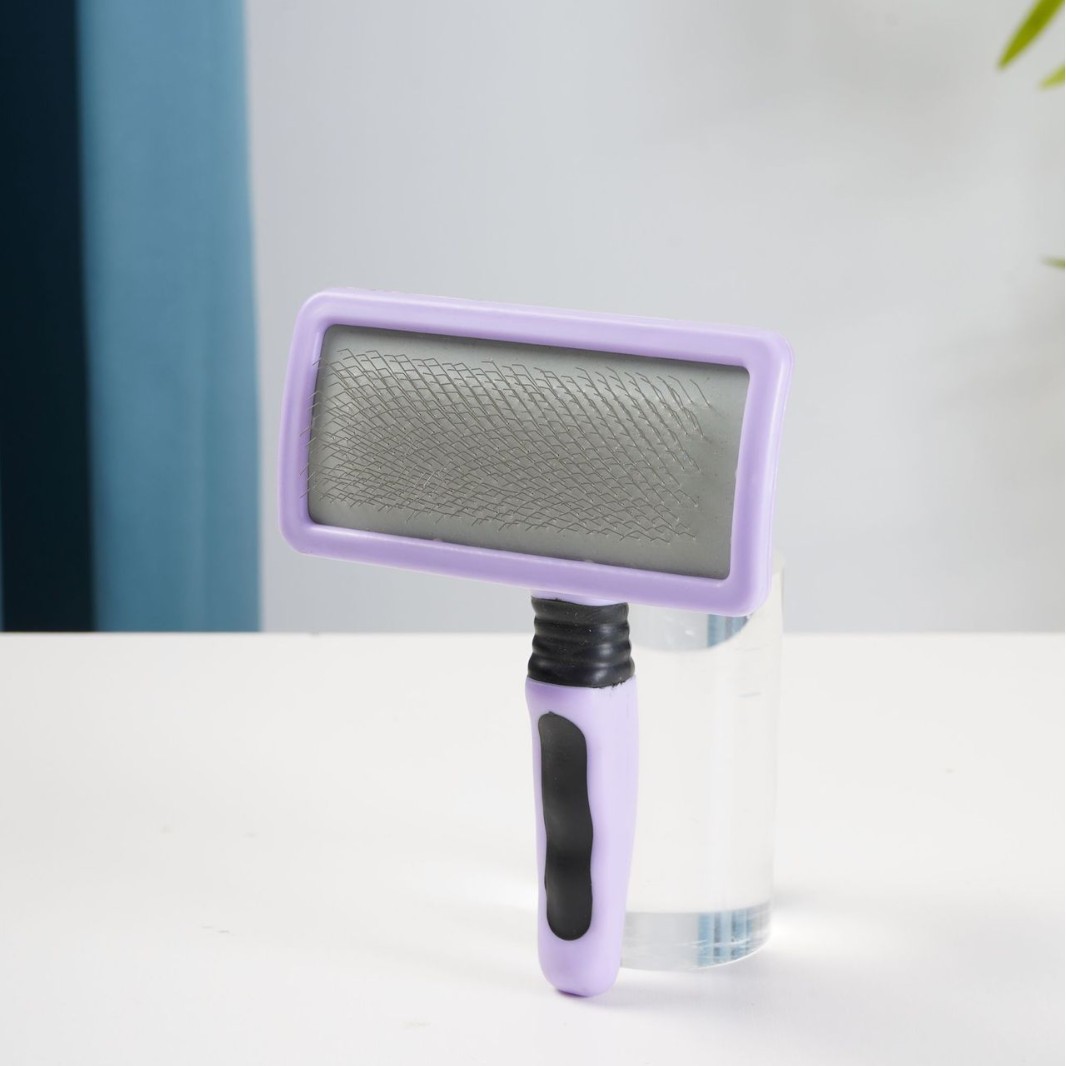 더블 퍼플 스타 개 미용사 고양이 풀 니들 빗 곡선형 소프트 및 하드 니들 브러시 플로팅 헤어 플라스틱 핸들 용품