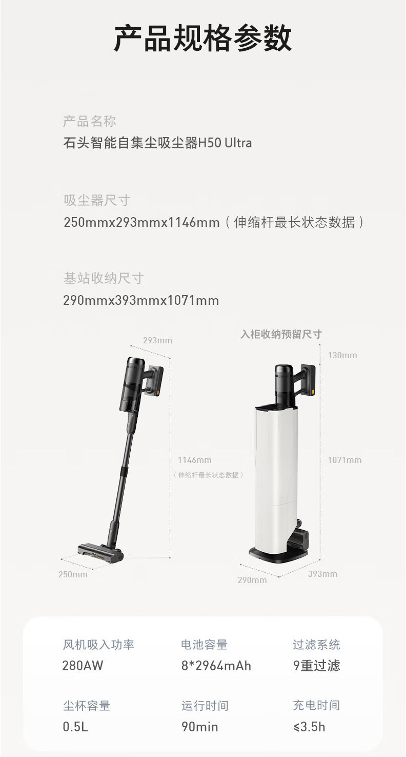 Roborock H50 Ultra 무선 초고속 자체 먼지 수집 진공 청소기 휴대용 진드기 제거 고흡입 애완 동물 가족에게 적합