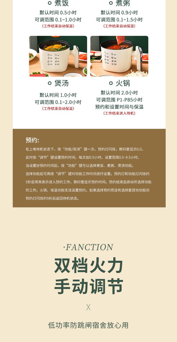 다기능 학생 밥솥, 스마트 전기 밥솥, 가정용 전기 밥솥, 밥, 죽, 요리, 기숙사 사용자 1~2명