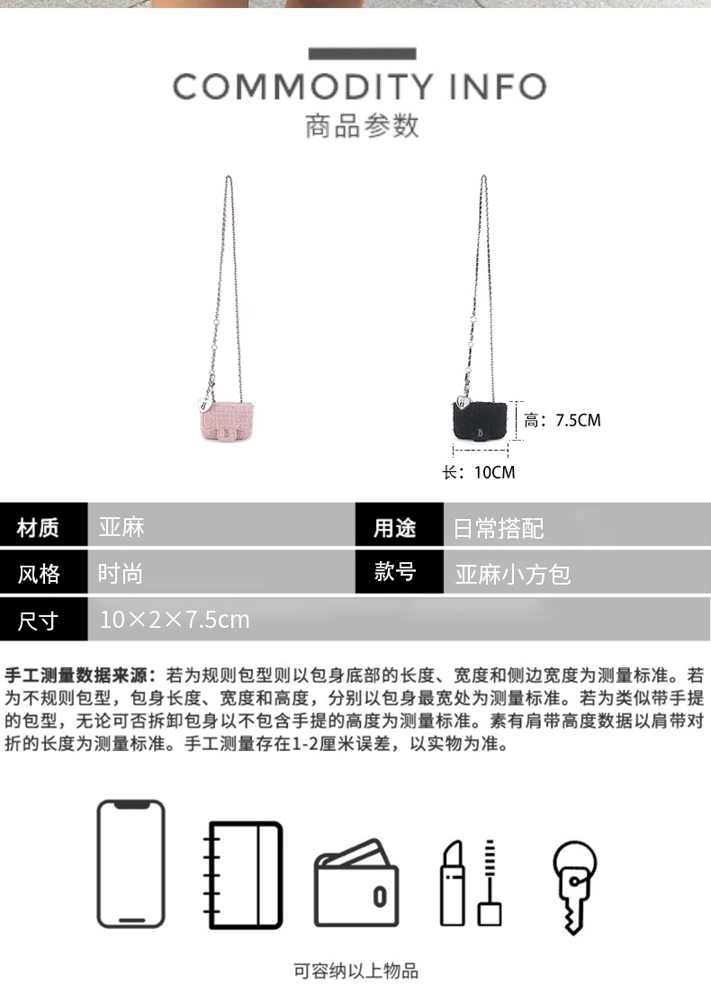 한국 the barnnet 작은 향기로운 체인 가방 패션 어깨 크로스 바디 허리 가방 동전 지갑 휴대용 사각형 가방