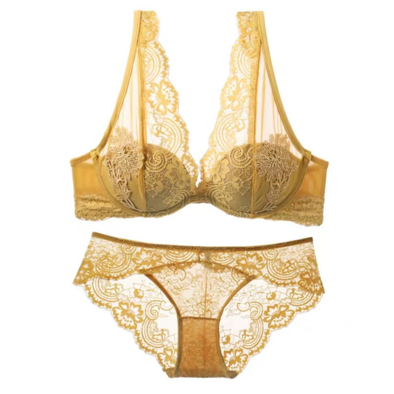 레이스 속옷 세트 여름 얇은 여성 프랑스 섹시 순수한 욕망 푸시 업 큰 가슴 작은 브래지어 아름다운 뒤 브래지어