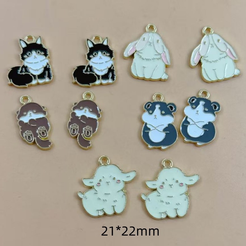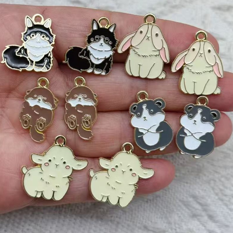 동물 고양이 토끼 개 펜던트 DIY 합금 쥬얼리 액세서리 목걸이 귀걸이 키 체인 펜던트 가방 액세서리