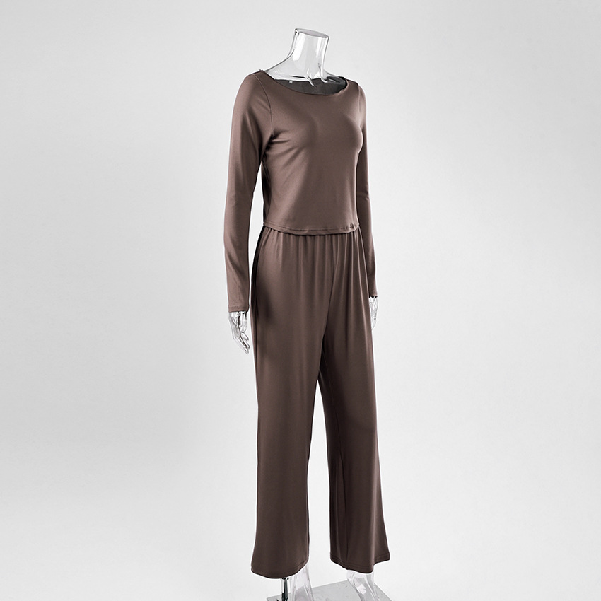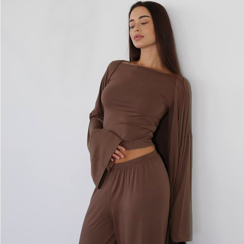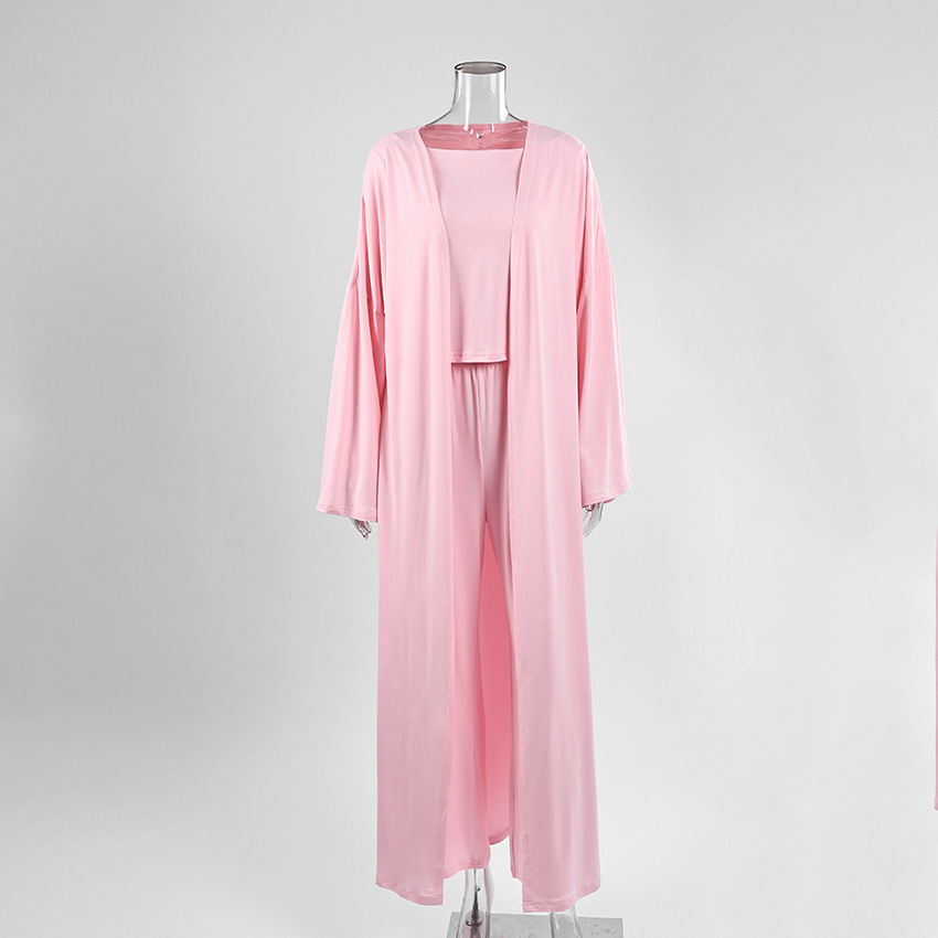 2026 봄 여름 신상 패션 잠옷 3종 세트 니트 단색 상의와 긴 바지, 루즈하고 편안한 유럽풍 홈웨어