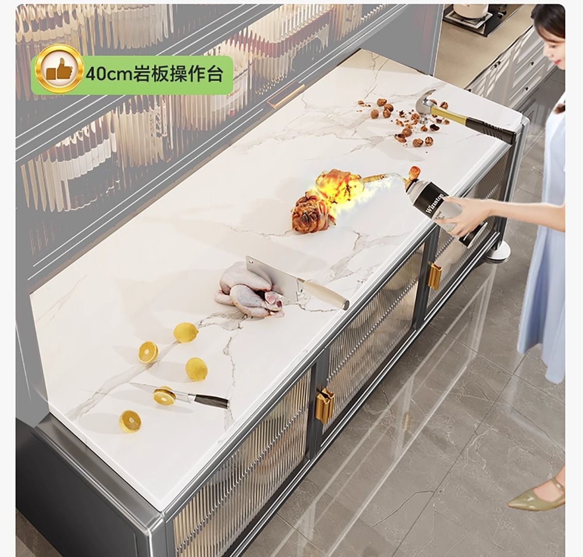 흰색 업그레이드 찬장, 후크 8개, 자석 도어 패널 - 두꺼운 암석 슬래브 조리대, 5겹 80CM 무료 액세서리, 이중 작업대