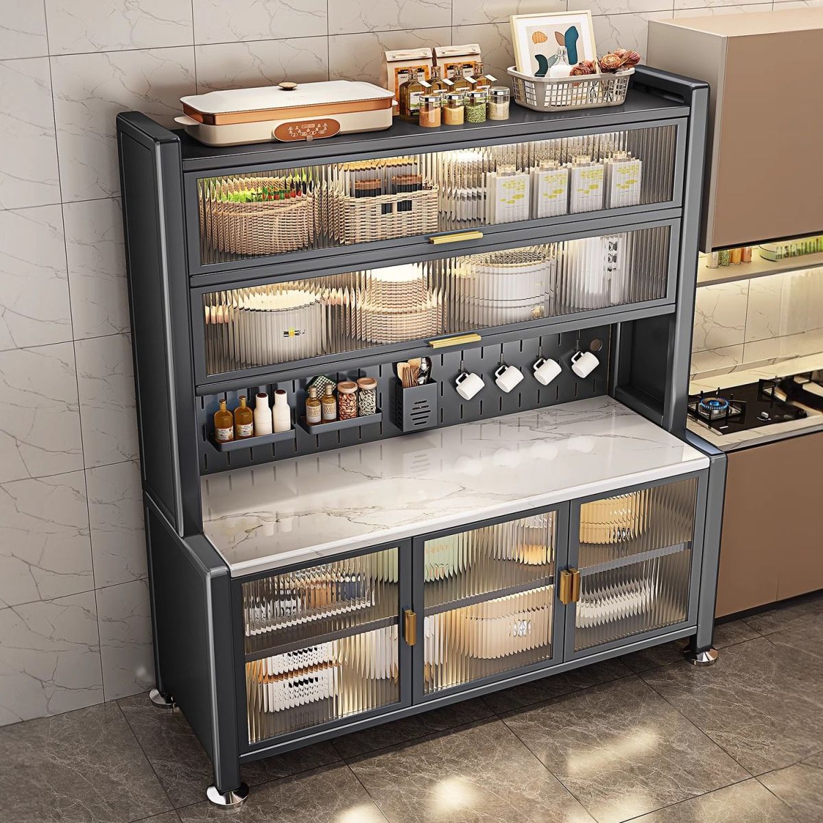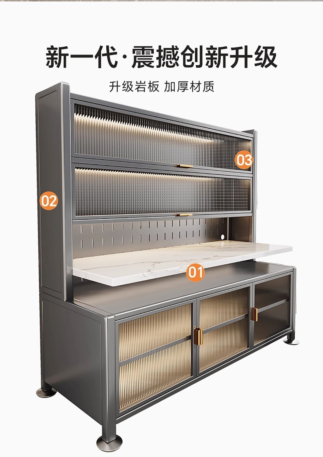 두꺼운 주방 수납 선반, 석판 식탁 수납, 바닥에서 천장까지 이어지는 다층 전자레인지 가전제품 다기능 수납 캐비닛