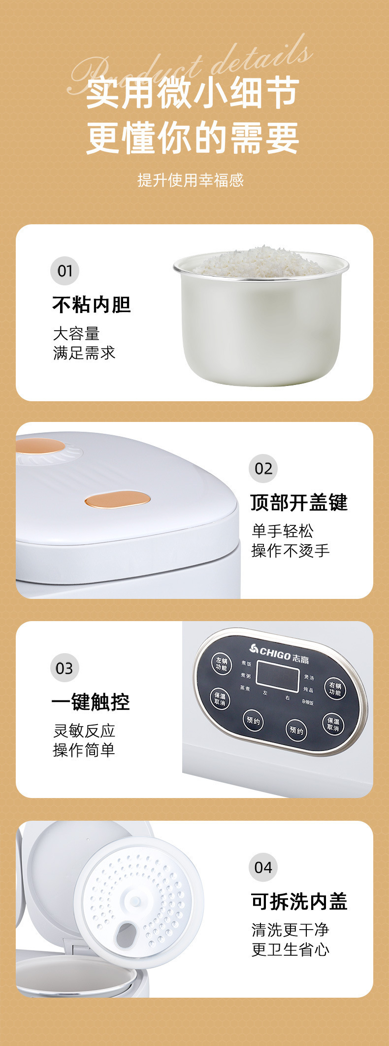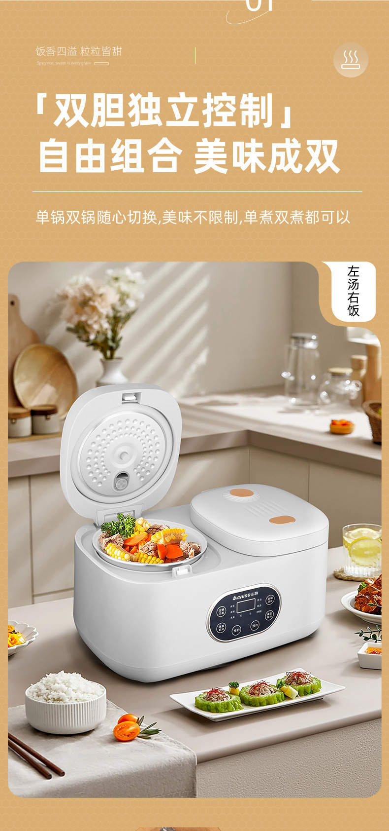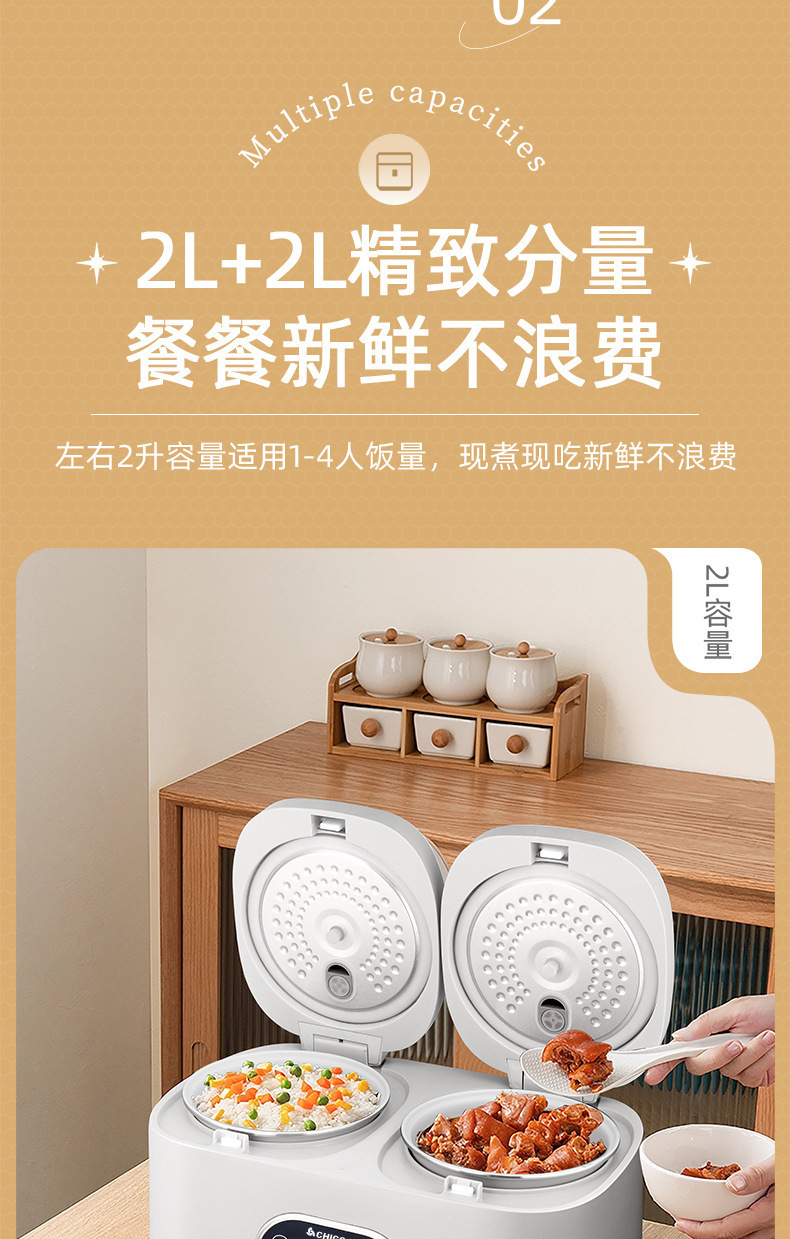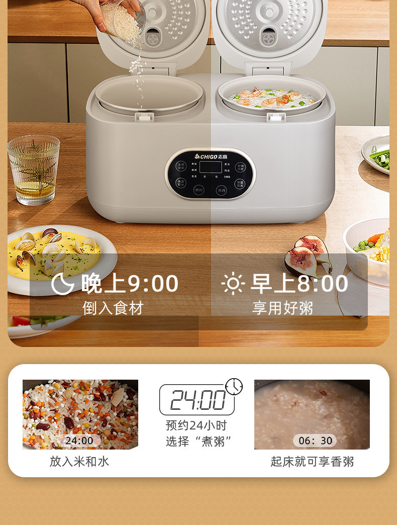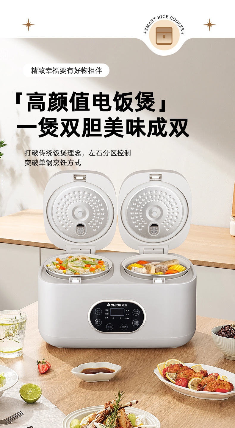 Chigo 더블 간밥솥 가정용 소형 다기능 올인원 4L 스마트 밥솥 미니 예약 배송 도매