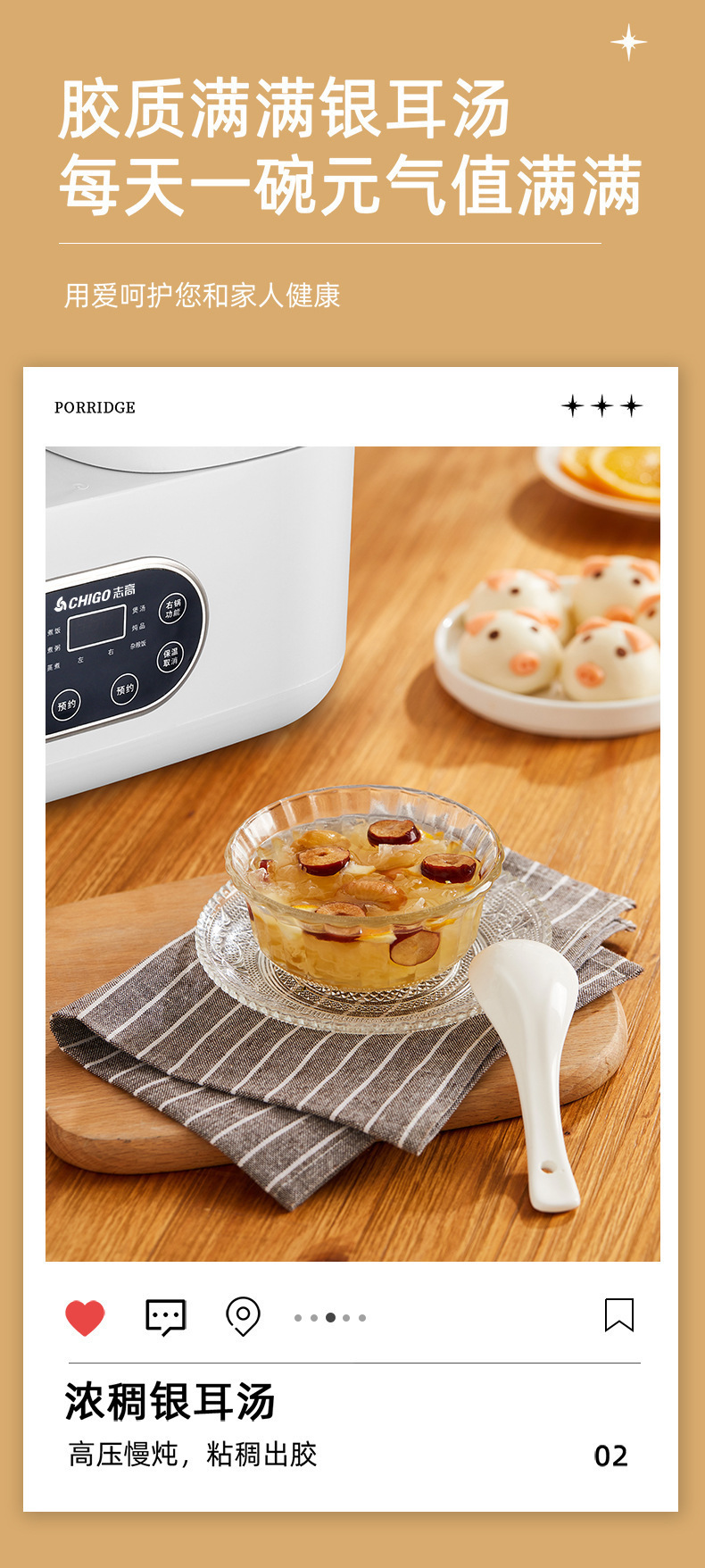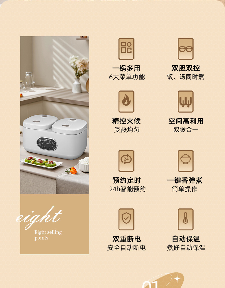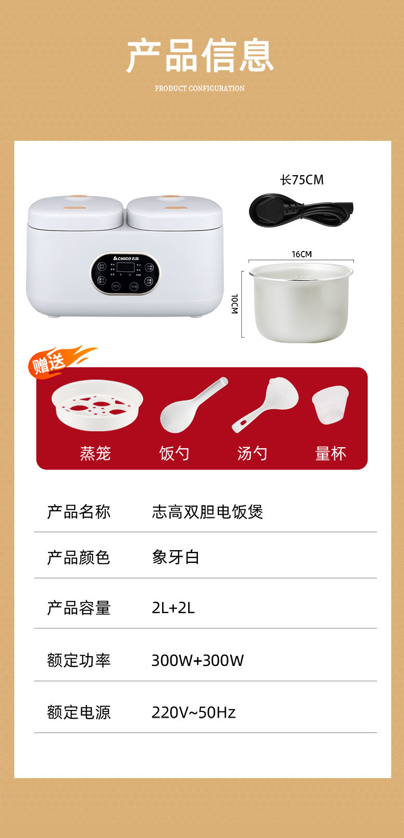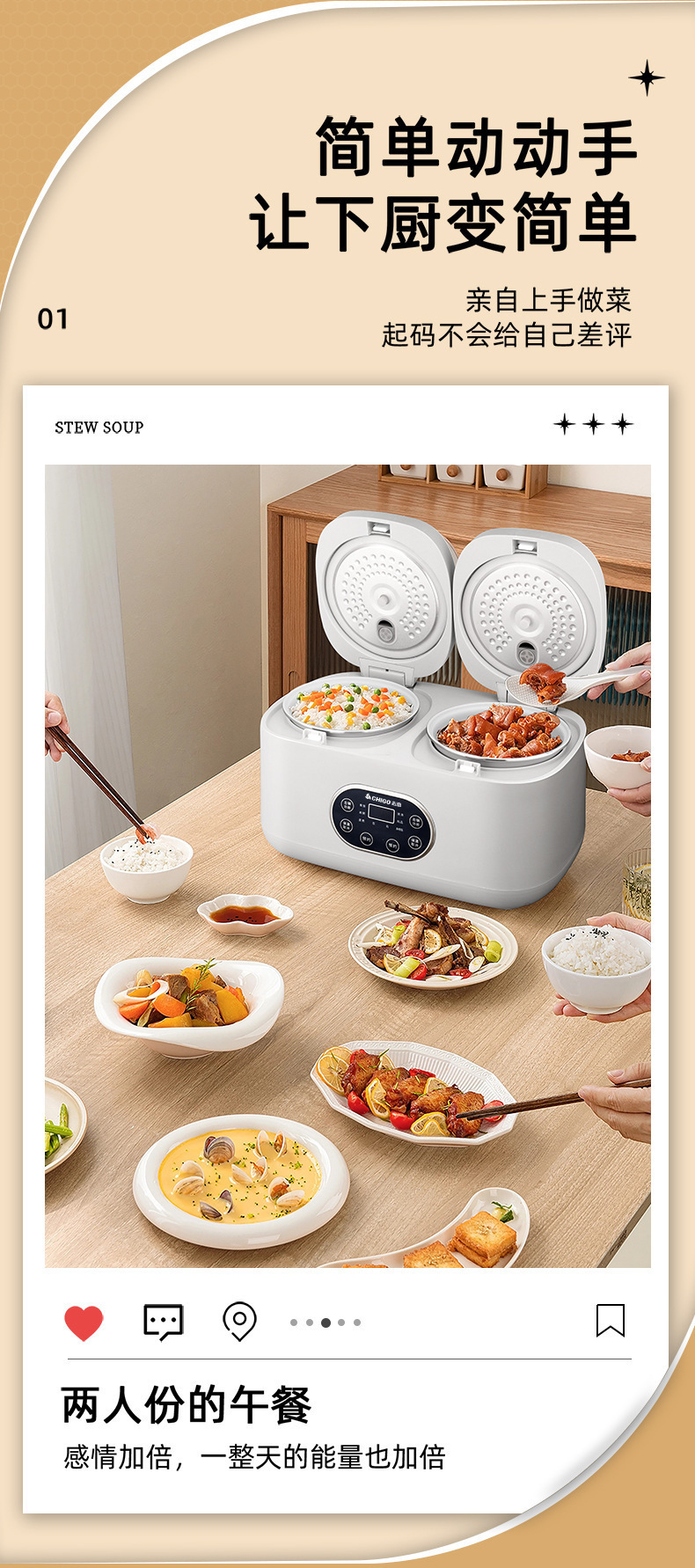 Chigo 더블 간밥솥 가정용 소형 다기능 올인원 4L 스마트 밥솥 미니 예약 배송 도매