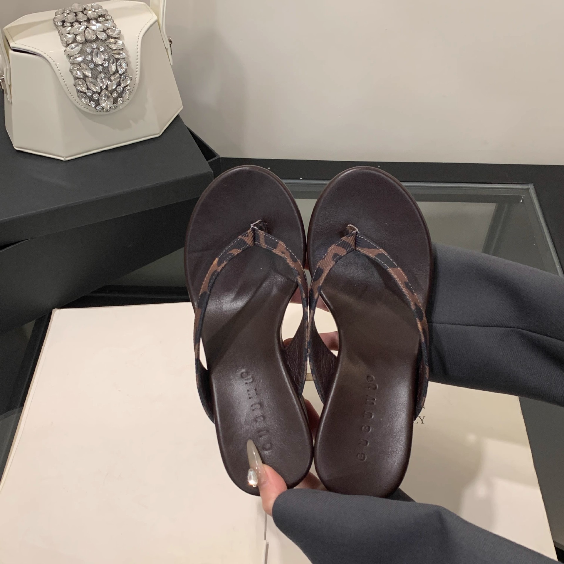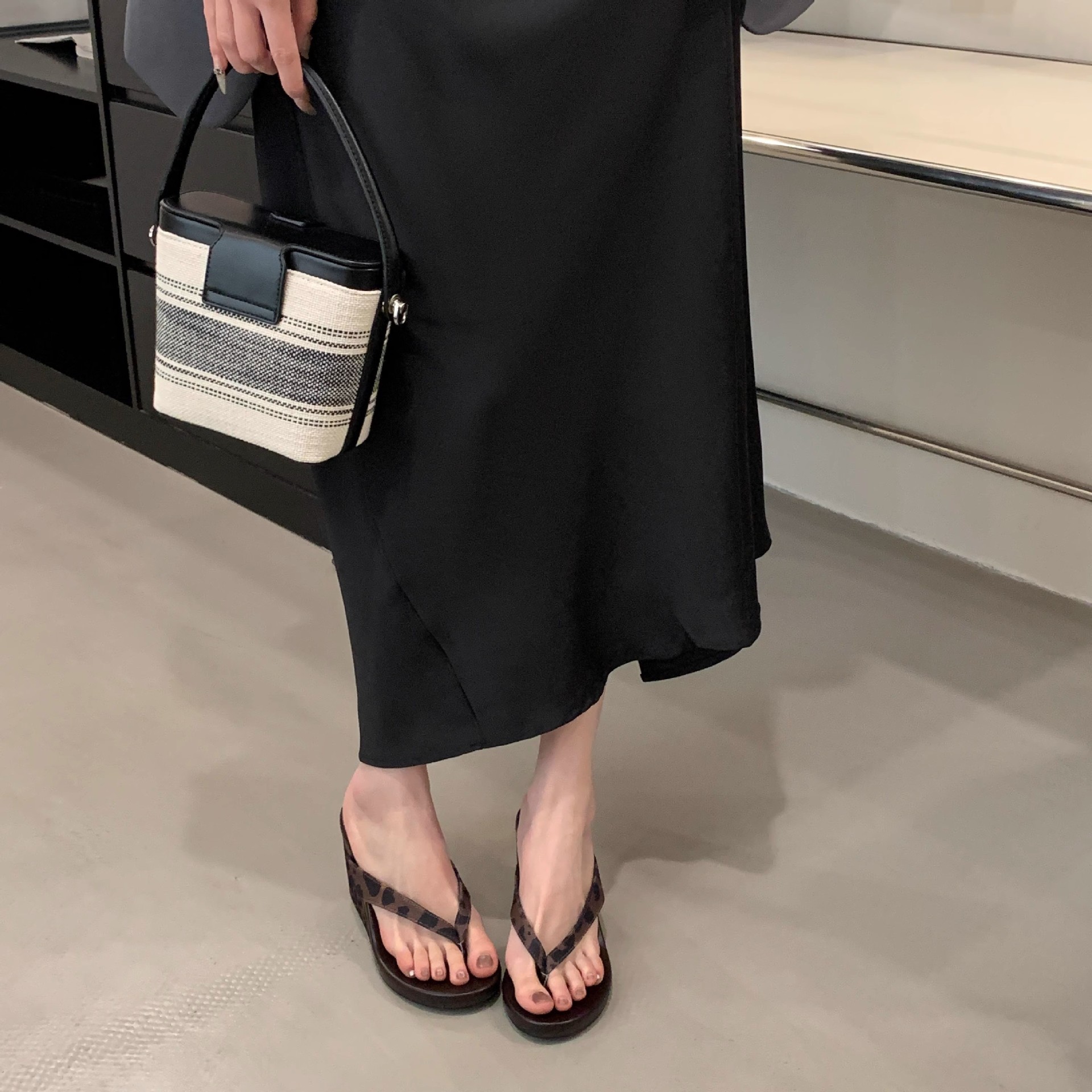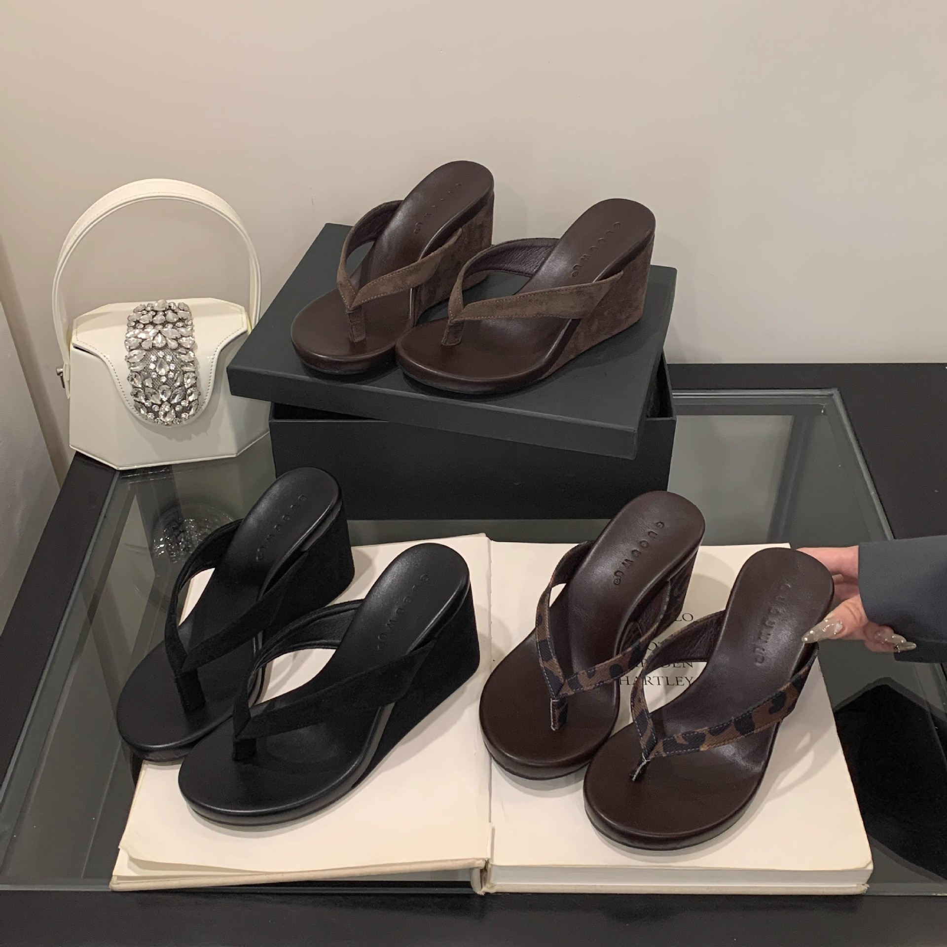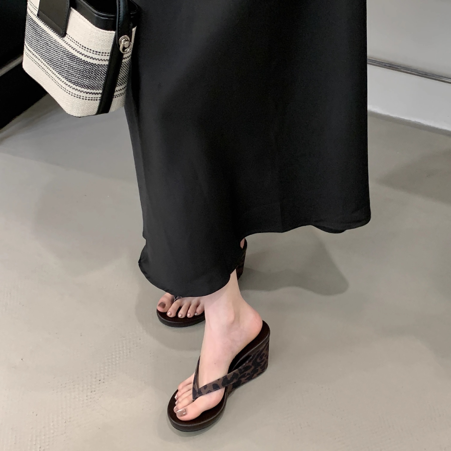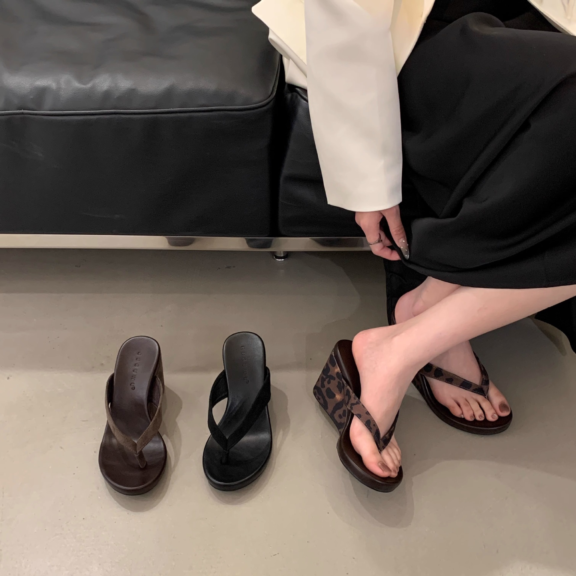 키 작은 분들을 위한 두꺼운 밑창 웨지힐, 두꺼운 굽의 로만 샌들, 여름 아우터로 입기 좋은 레오파드 프린트 슬리퍼