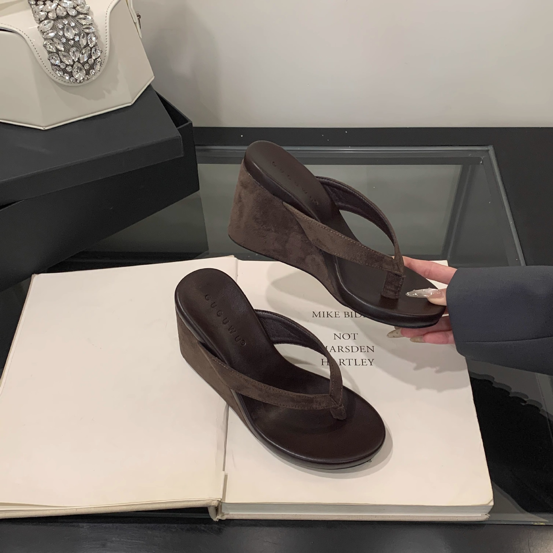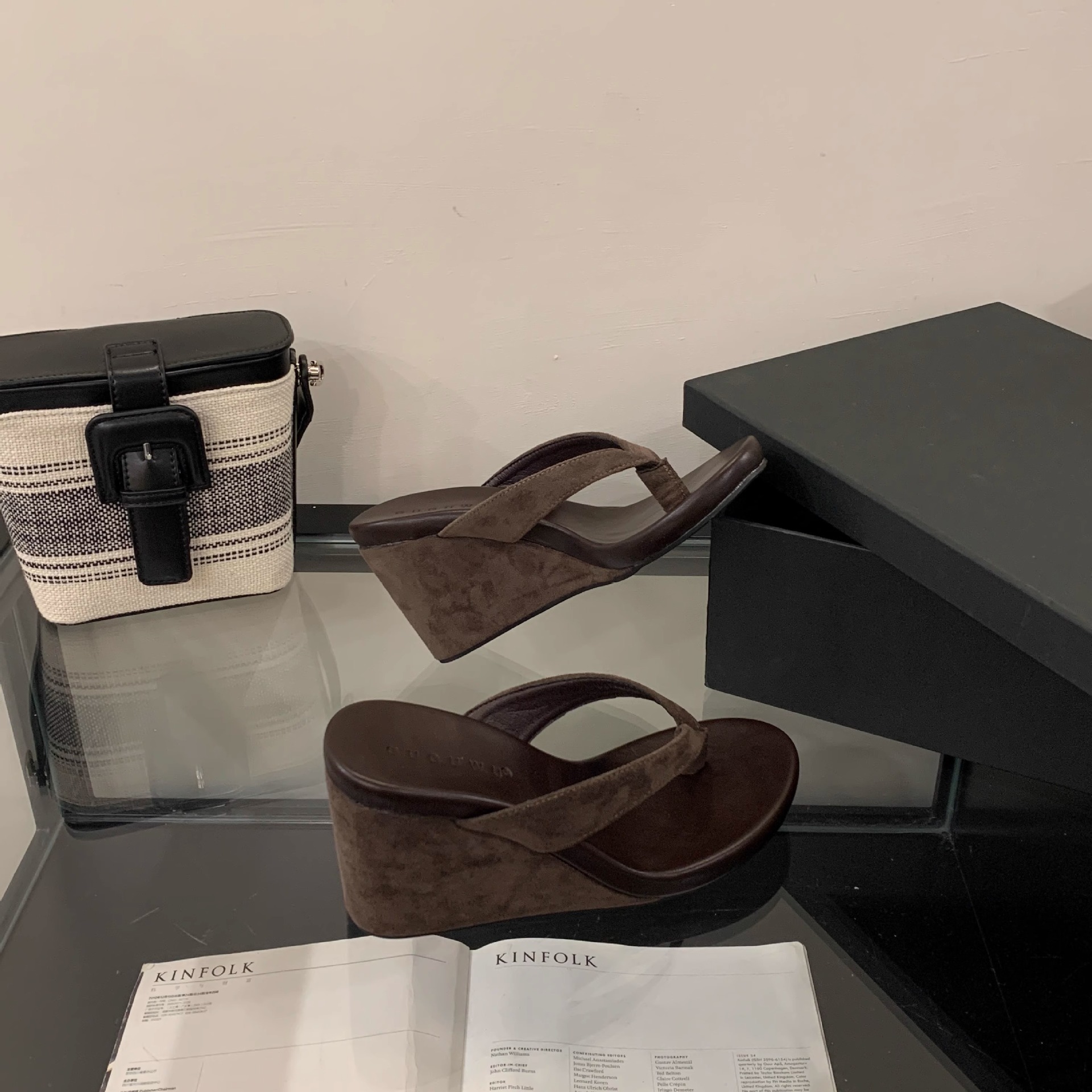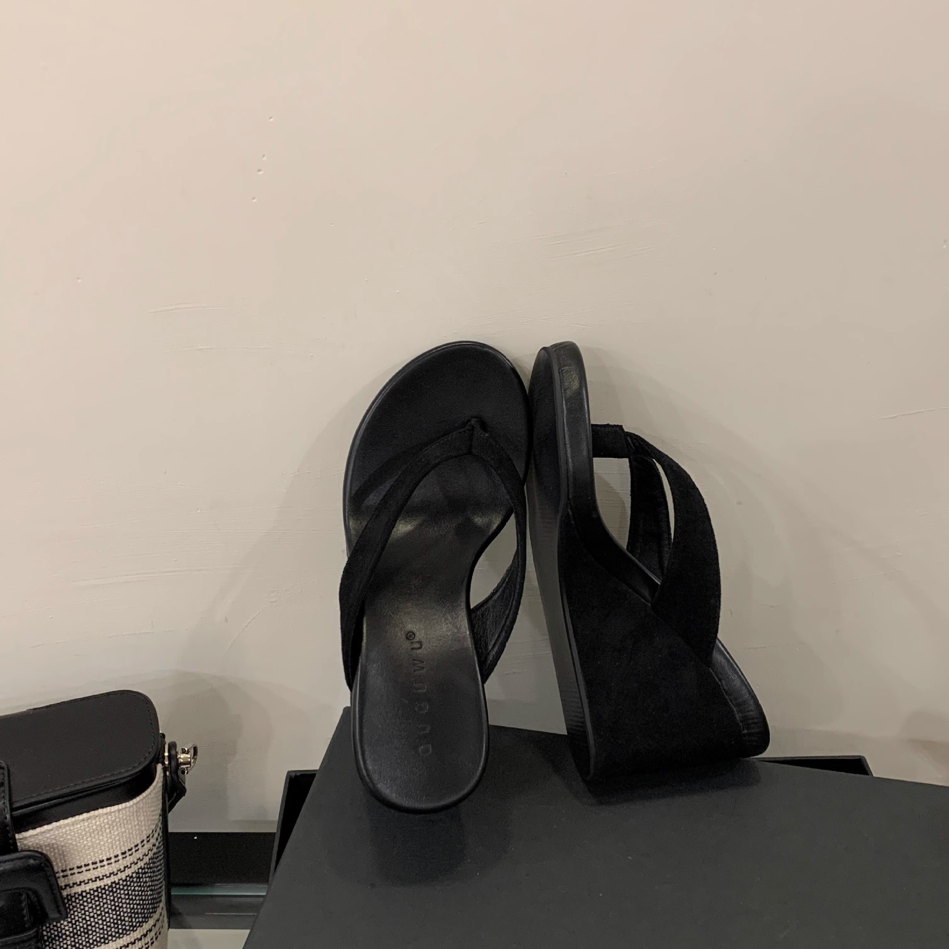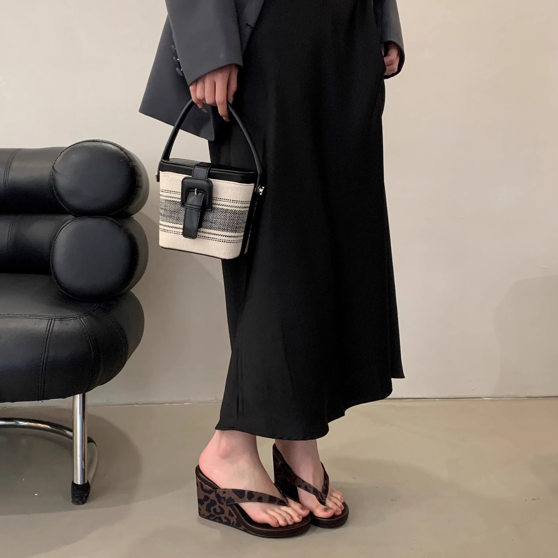 키 작은 분들을 위한 두꺼운 밑창 웨지힐, 두꺼운 굽의 로만 샌들, 여름 아우터로 입기 좋은 레오파드 프린트 슬리퍼