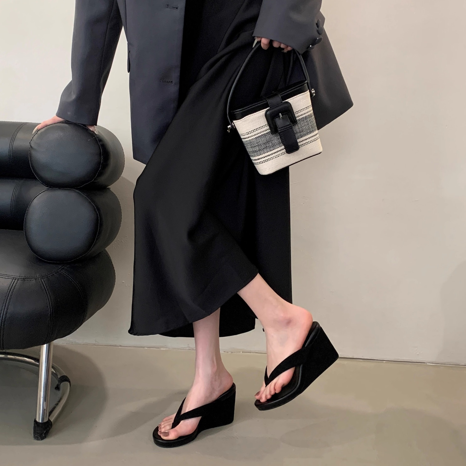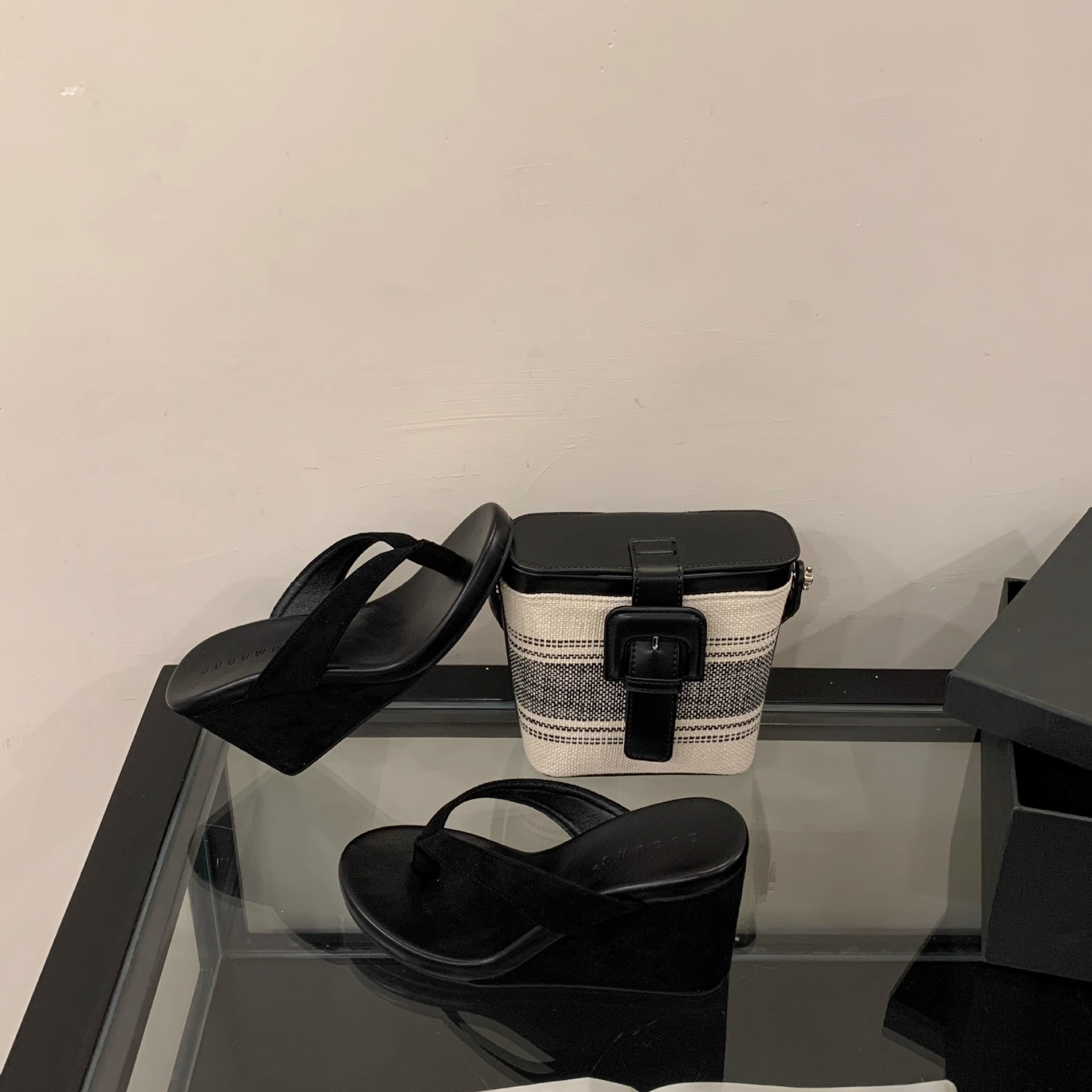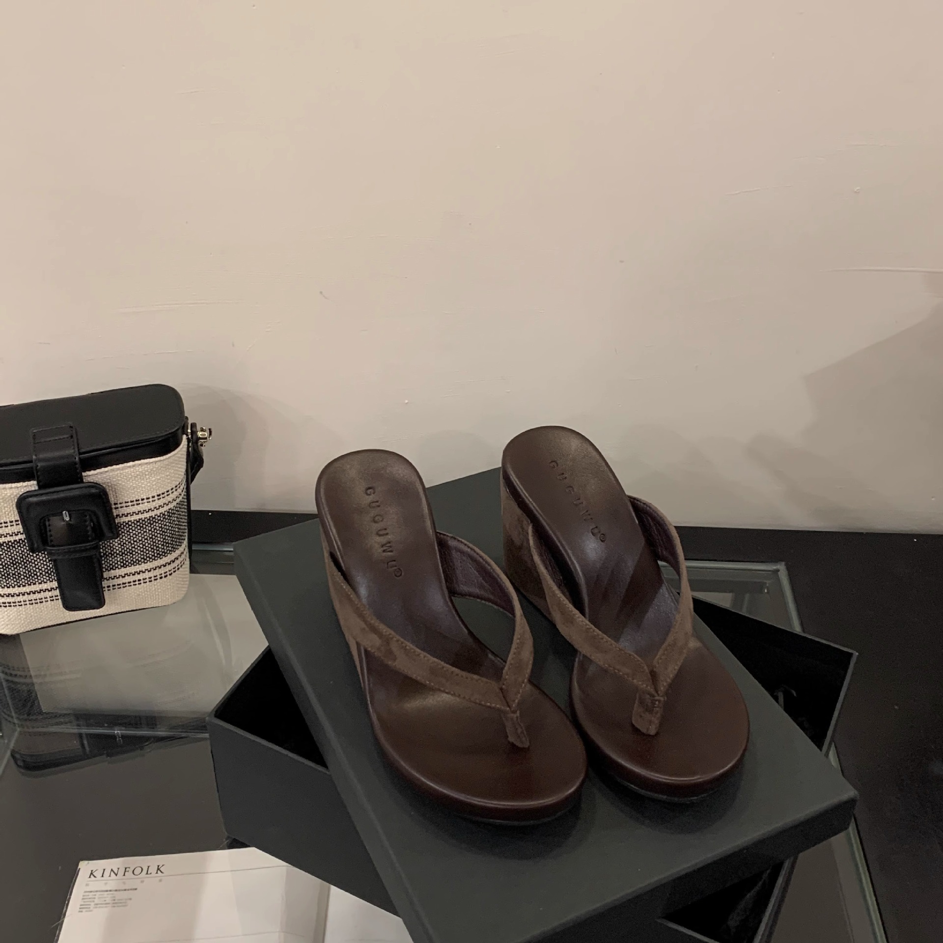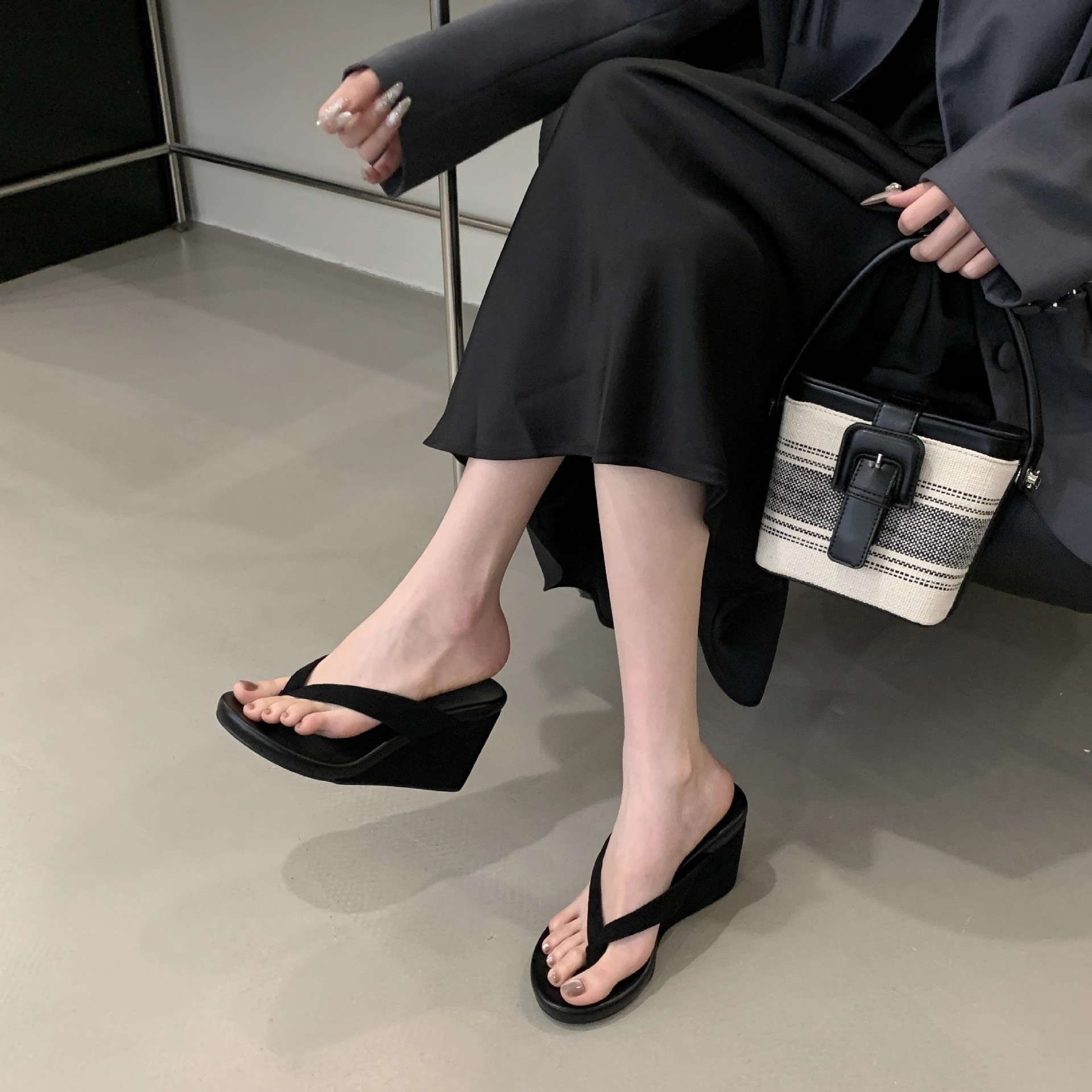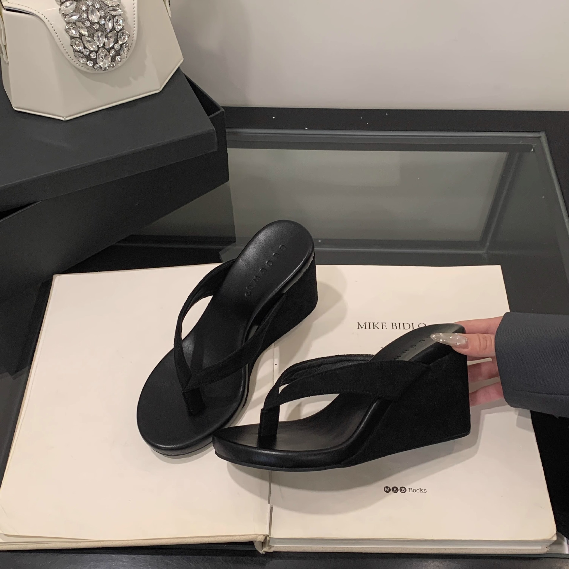 키 작은 분들을 위한 두꺼운 밑창 웨지힐, 두꺼운 굽의 로만 샌들, 여름 아우터로 입기 좋은 레오파드 프린트 슬리퍼