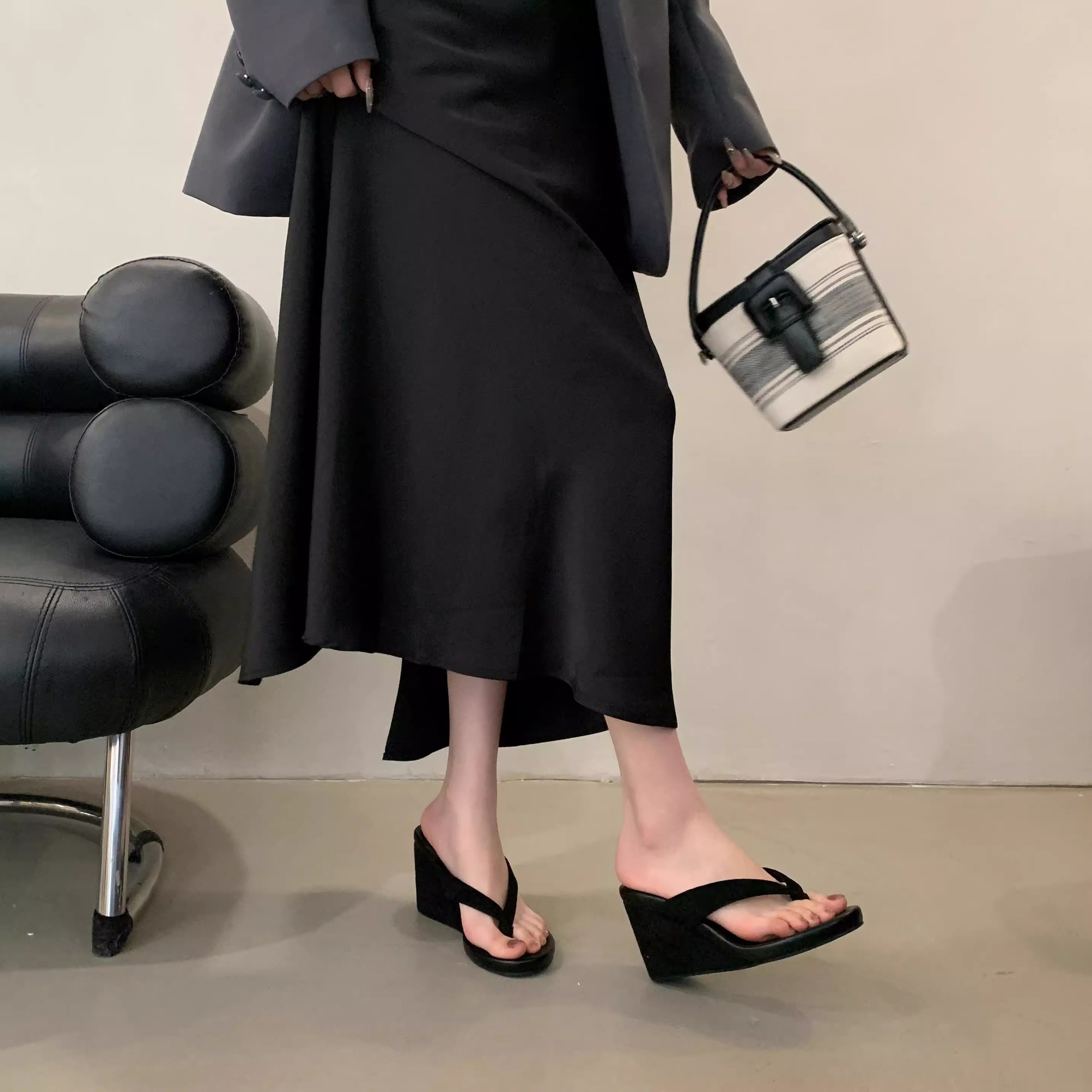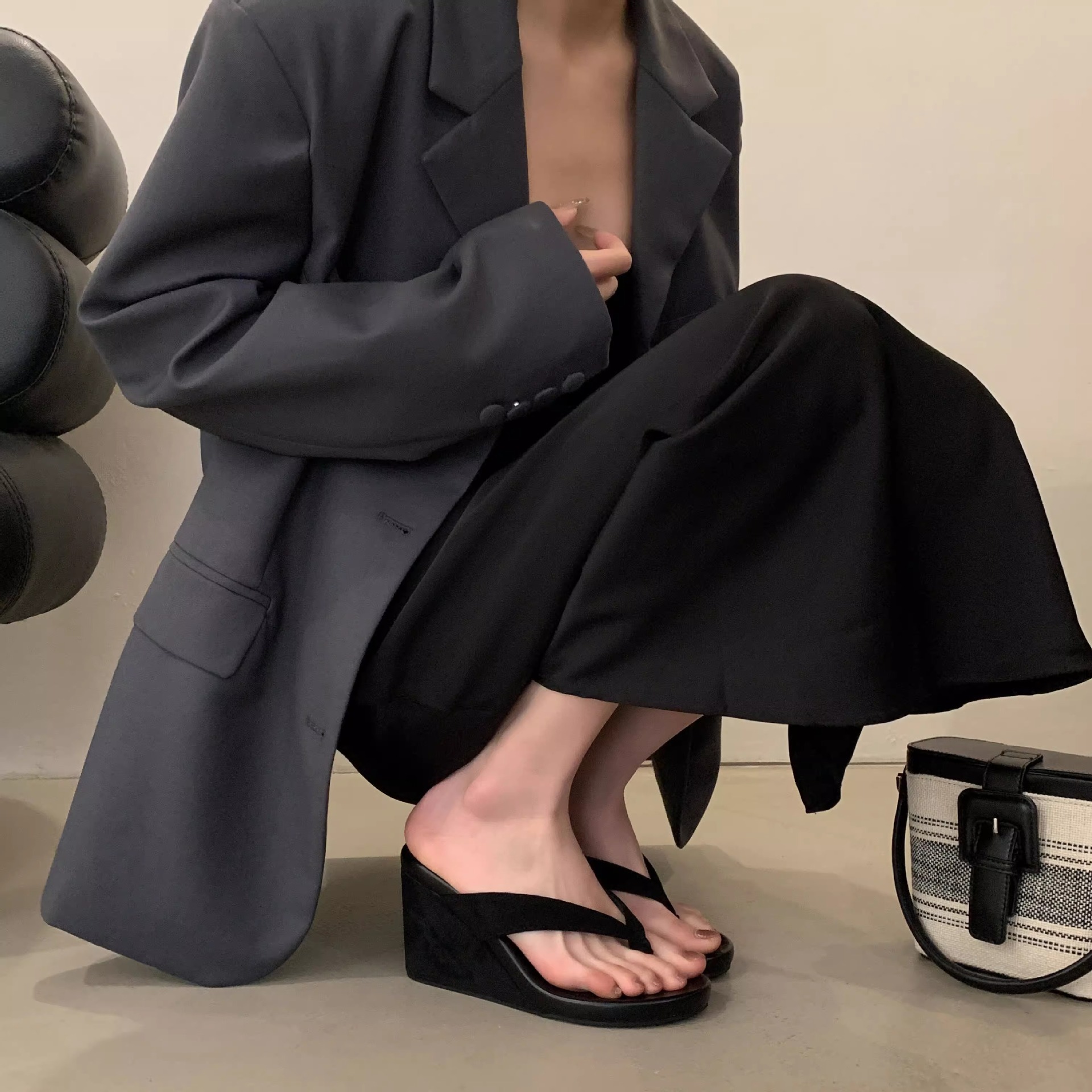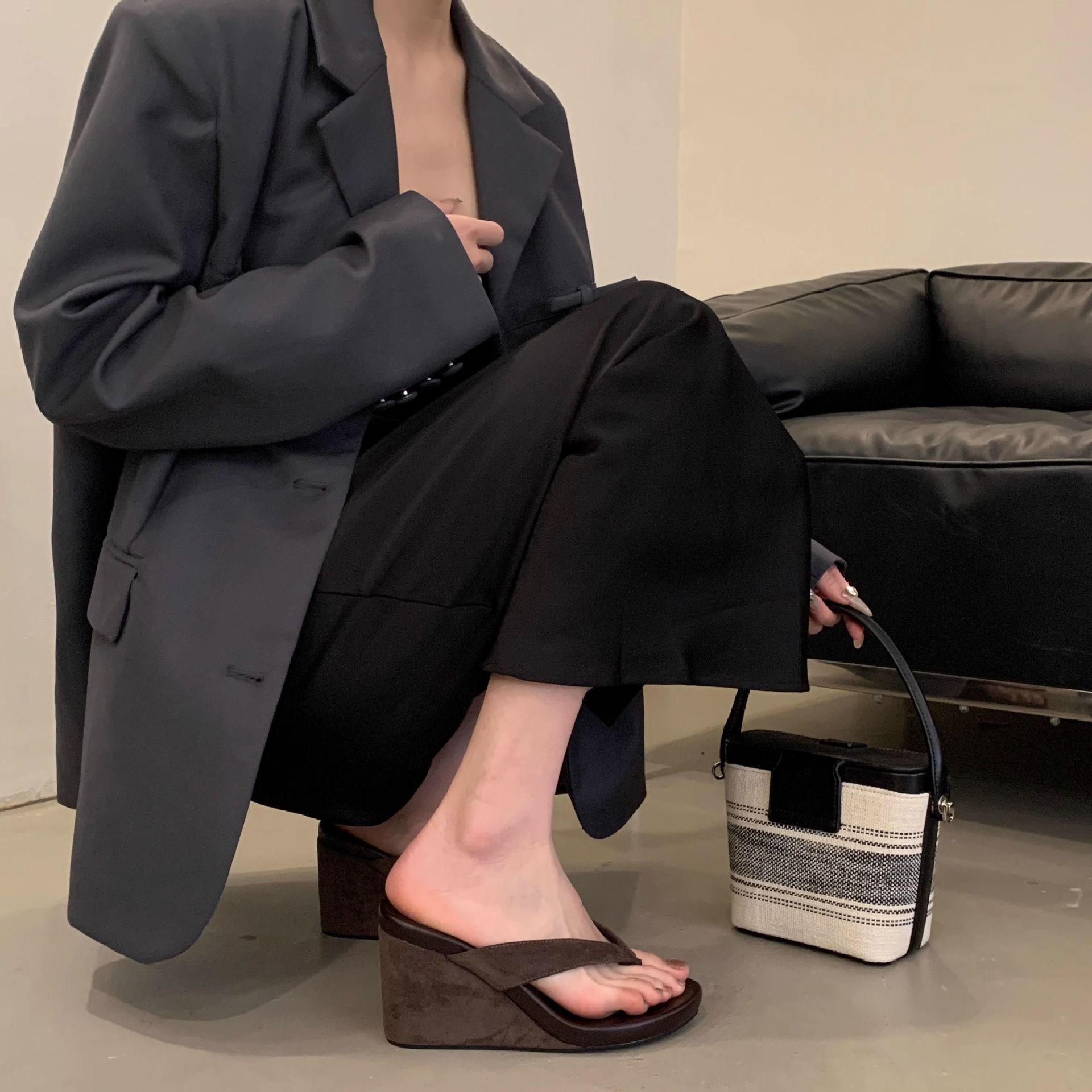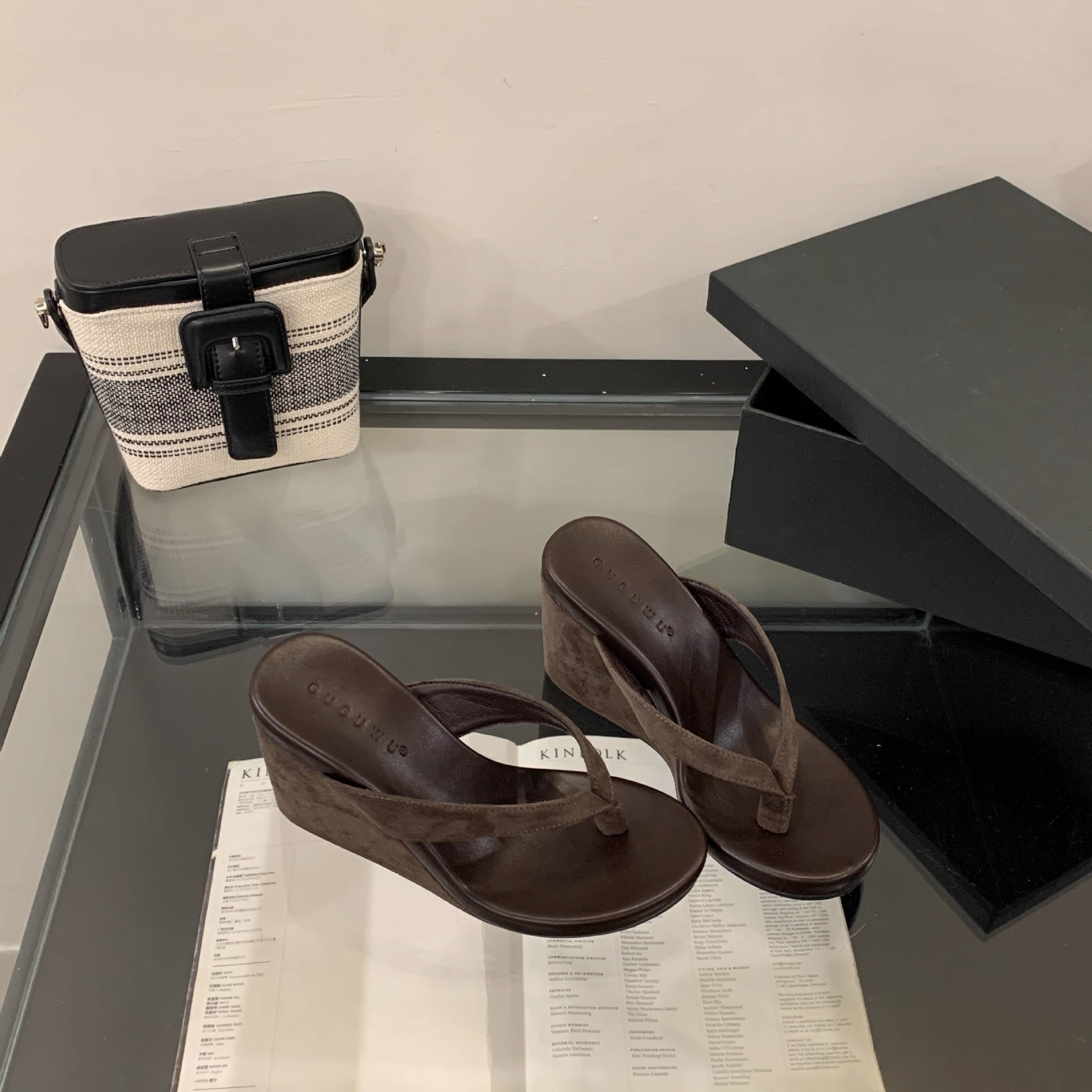 키 작은 분들을 위한 두꺼운 밑창 웨지힐, 두꺼운 굽의 로만 샌들, 여름 아우터로 입기 좋은 레오파드 프린트 슬리퍼