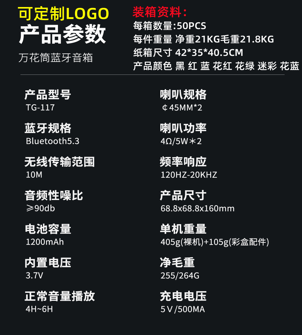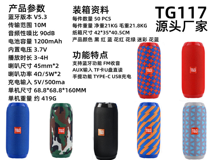국경 간 인기 TG117 야외 블루투스 스피커 카드 U 디스크 오디오 컴퓨터 서브 우퍼 선물 목록 로고 인쇄