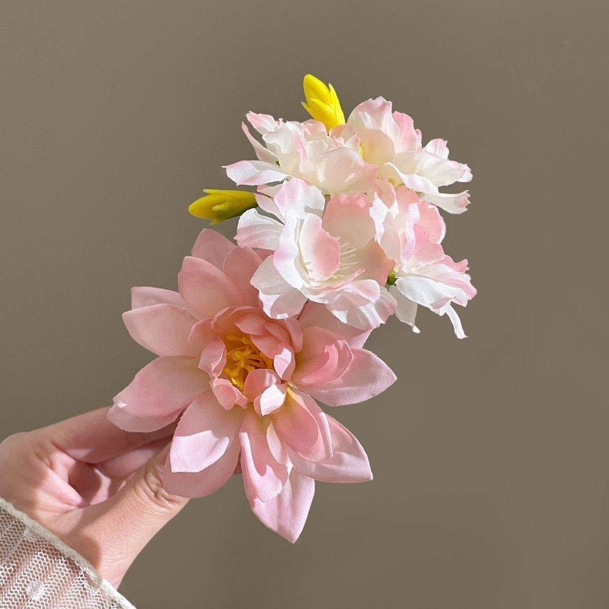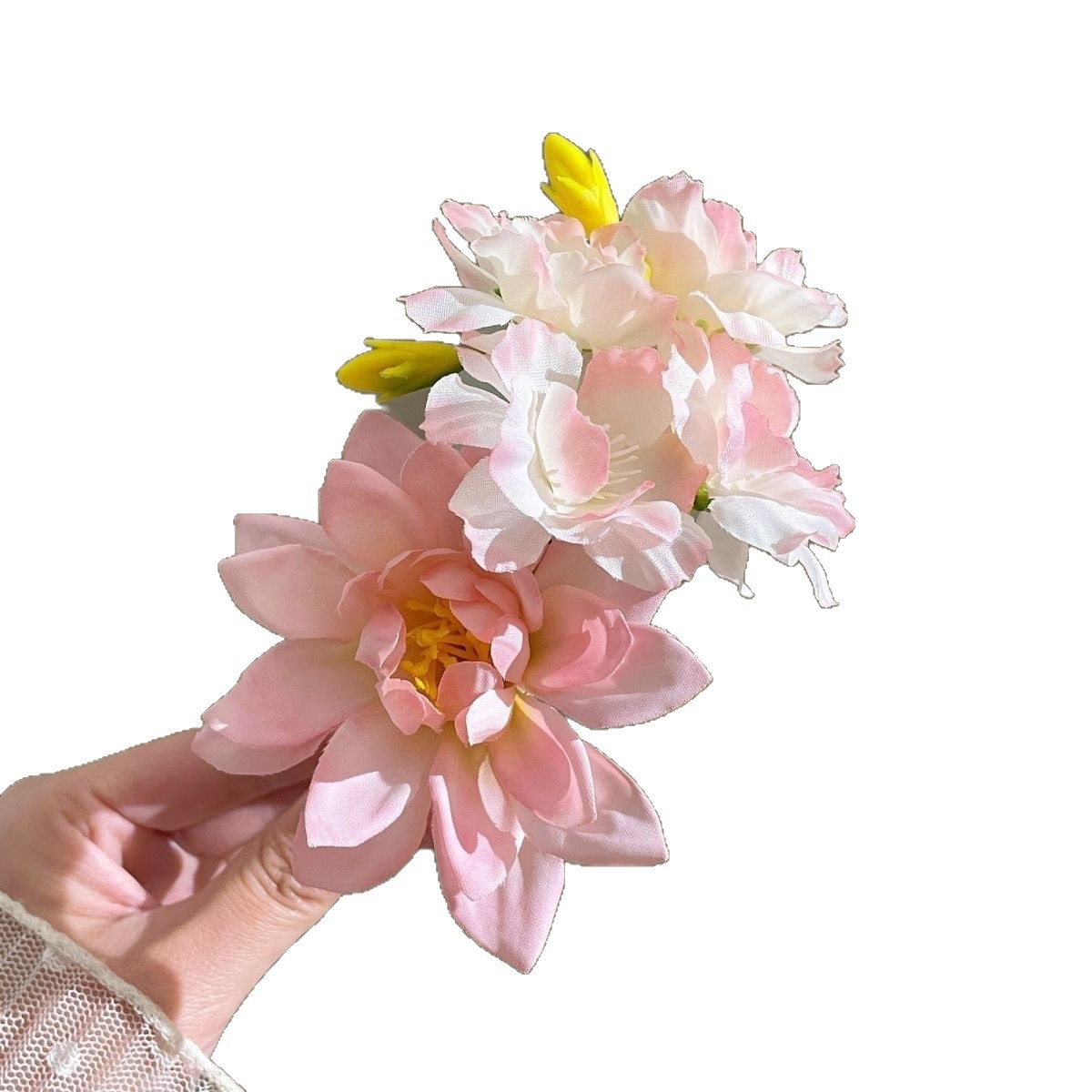 분위기 있는 새로운 중국 스타일 부드러운 핑크 꽃 머리핀 복고풍 머리 볼 머리핀 꽃 클립 헤어 액세서리 도매