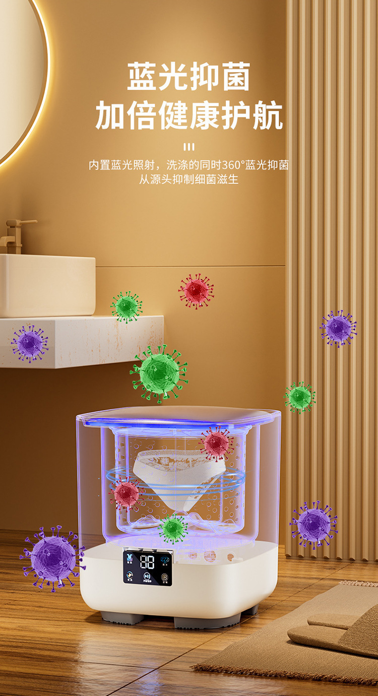 속옷과 양말을 세탁하고 탈착할 수 있는 새로운 완전 자동 미니 세탁기, 은이온 오존 소형 세탁기