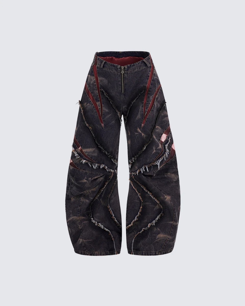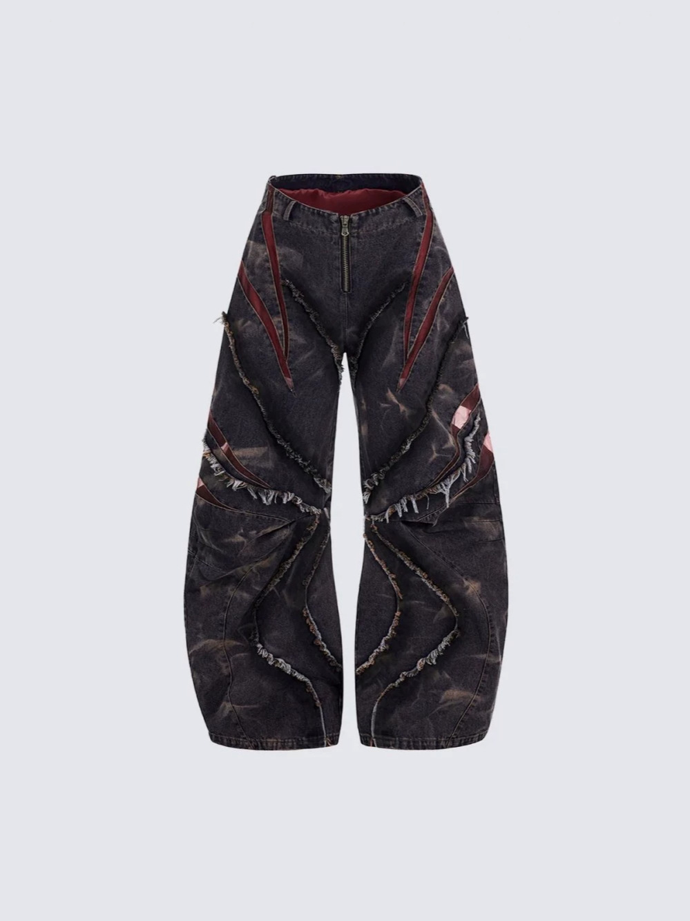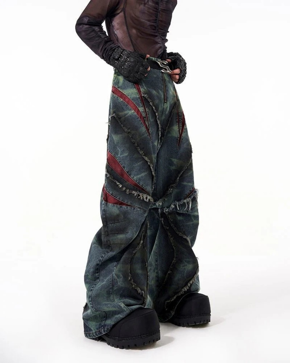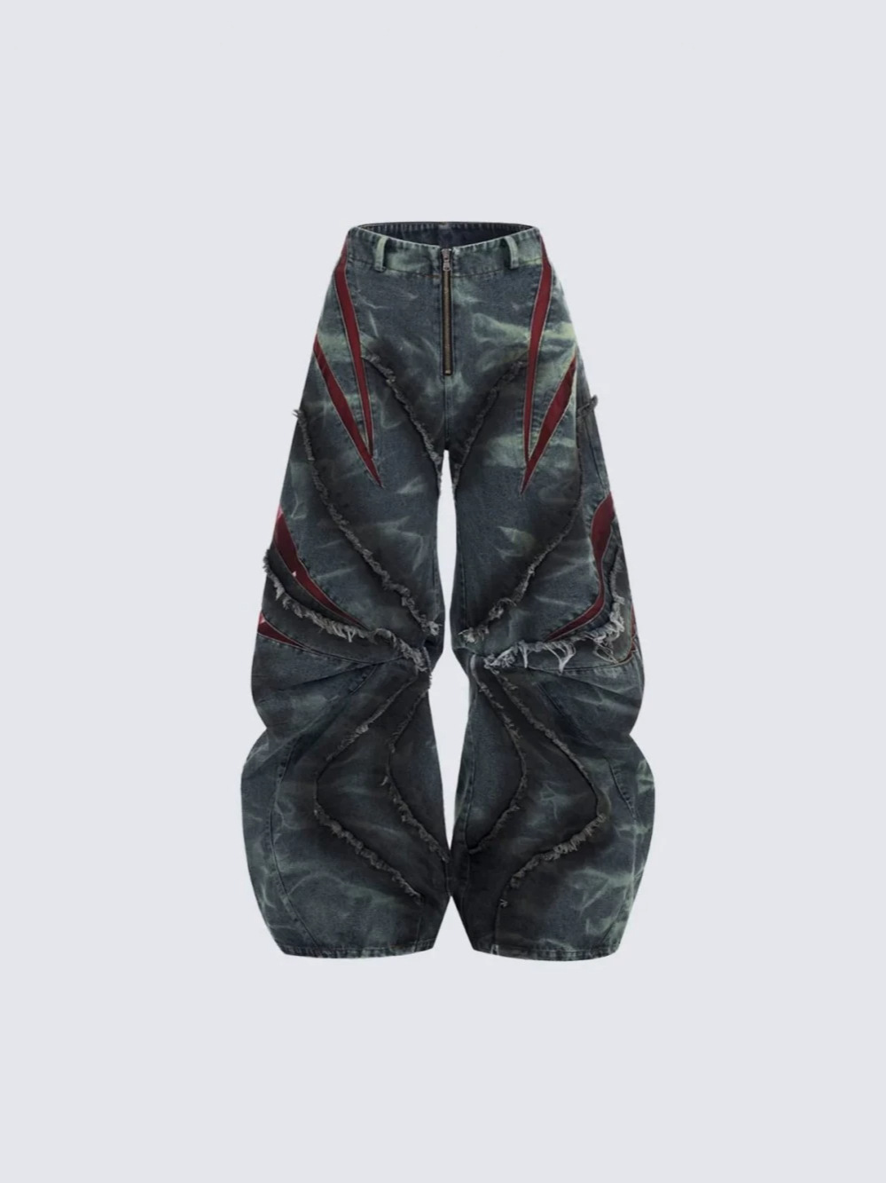 유럽과 미국의 하이 스트리트 헤비듀티 스노우플레이크 세이버 청바지 남성용 봄 로우 엣지 스플라이스 메쉬 와이드 레그 팬츠