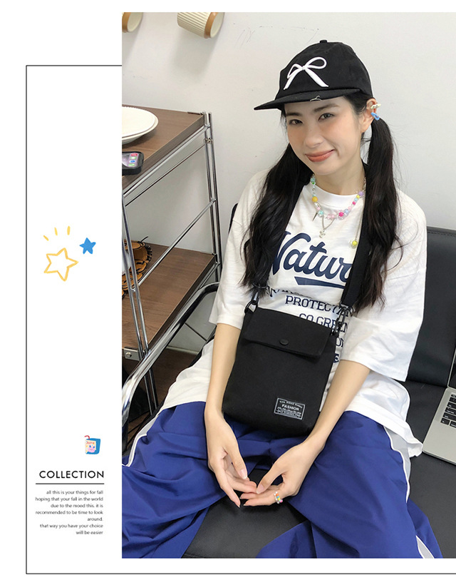 휴대폰가방, 여성용 크로스백, 심플 미니백, 캔버스백, 트렌디하고 활용도가 높은 세로형 숄더키 동전지갑