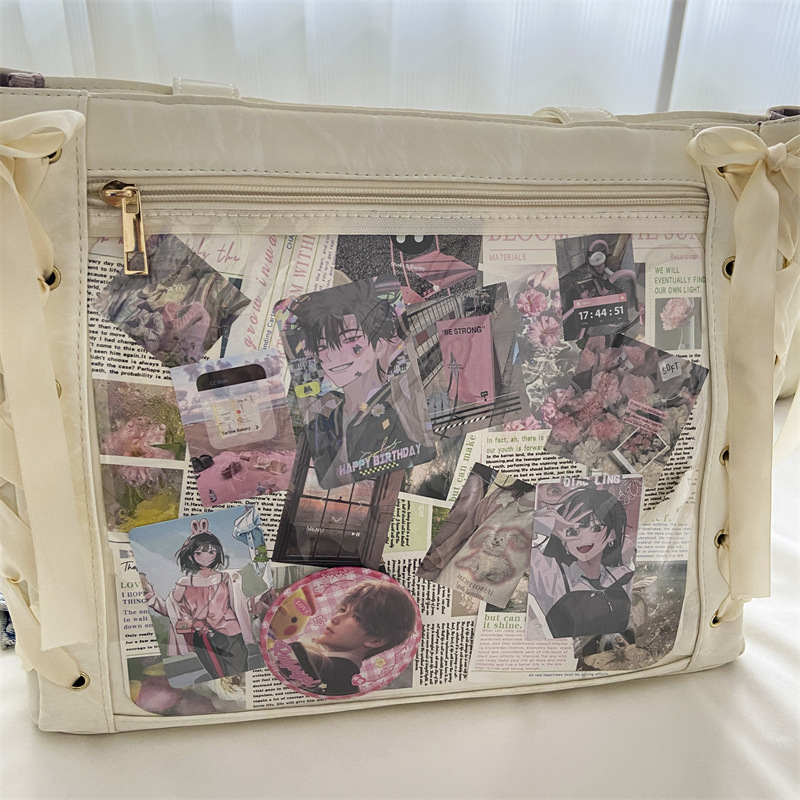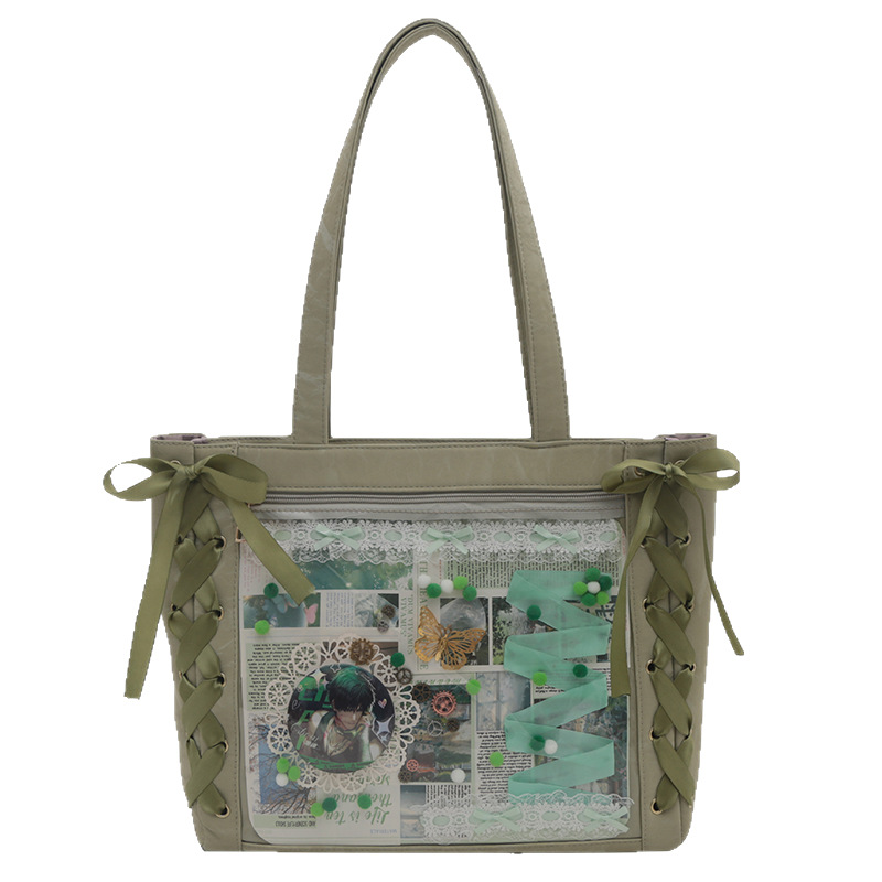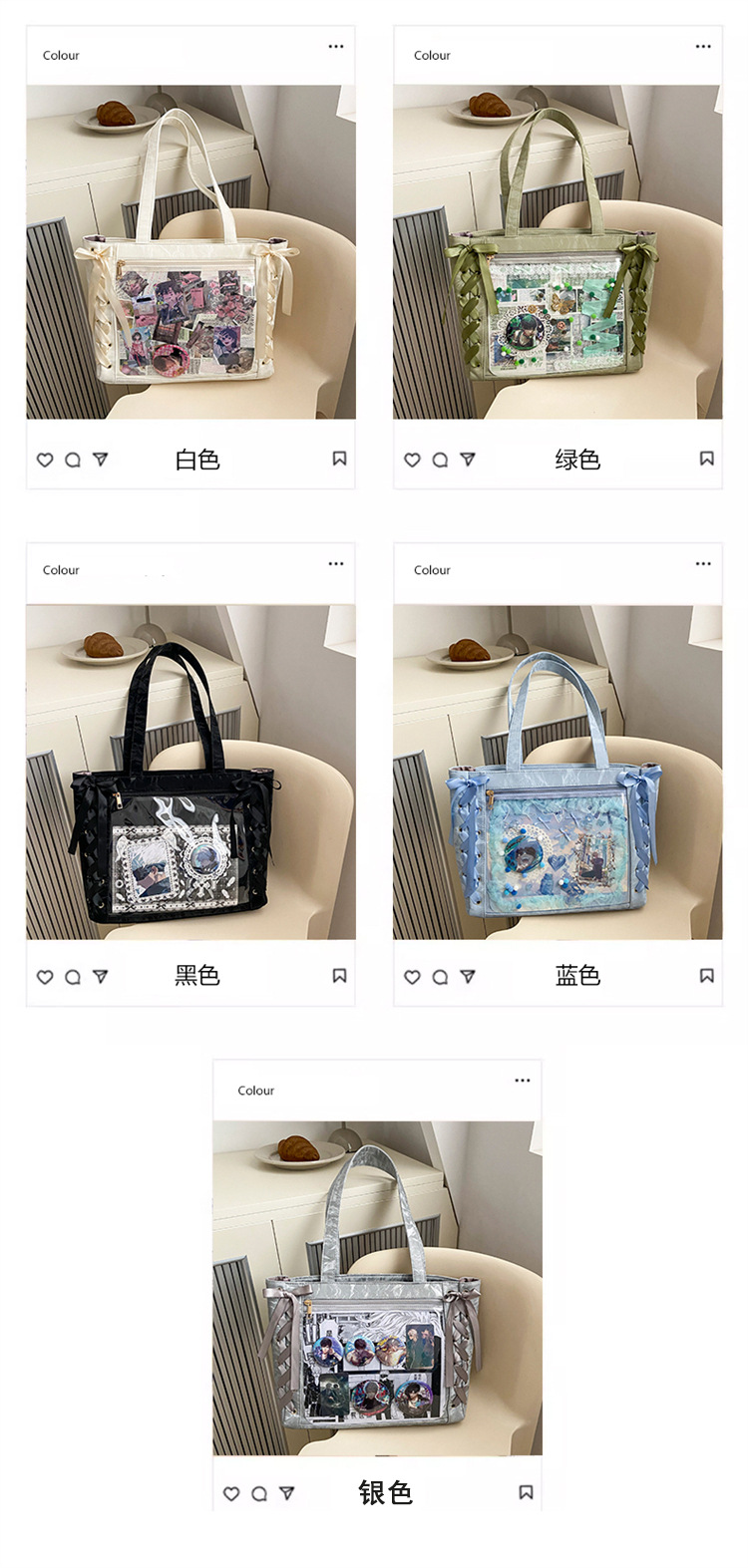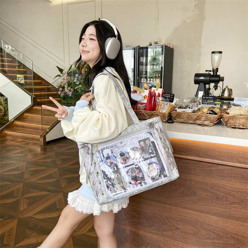 대용량 여성 가방 리본 JK 달콤한 소녀풍 투명 대용량 토트백 여성 가방 공장 직영