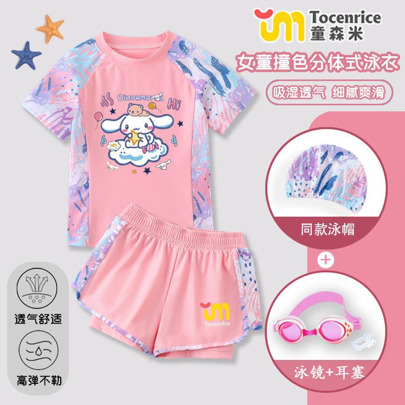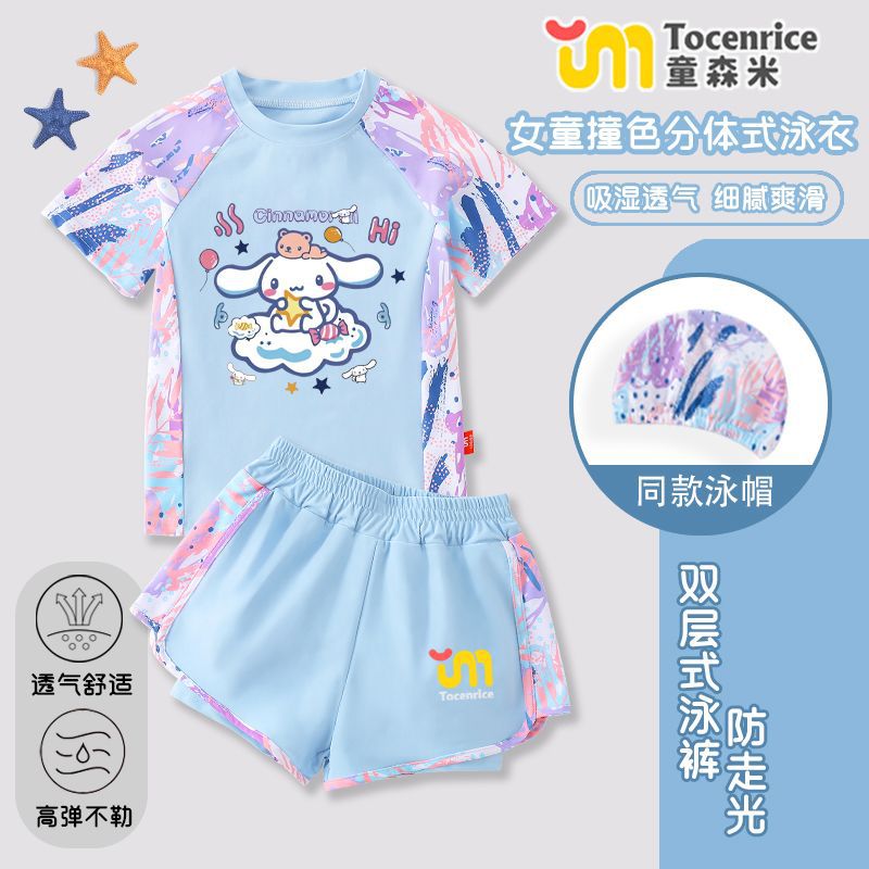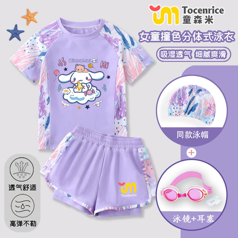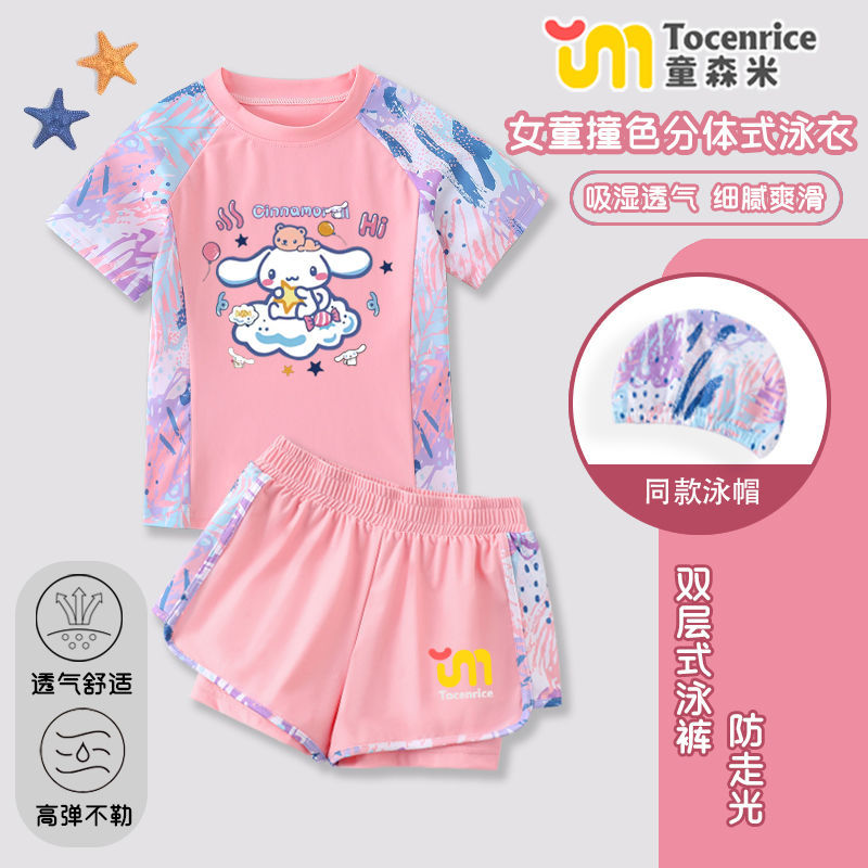 Jade Dog Girls 수영복 세트 2025 새로운 어린이 수영복 수영복 아기 소녀 태양 보호 속건성 스플릿 투피스 세트