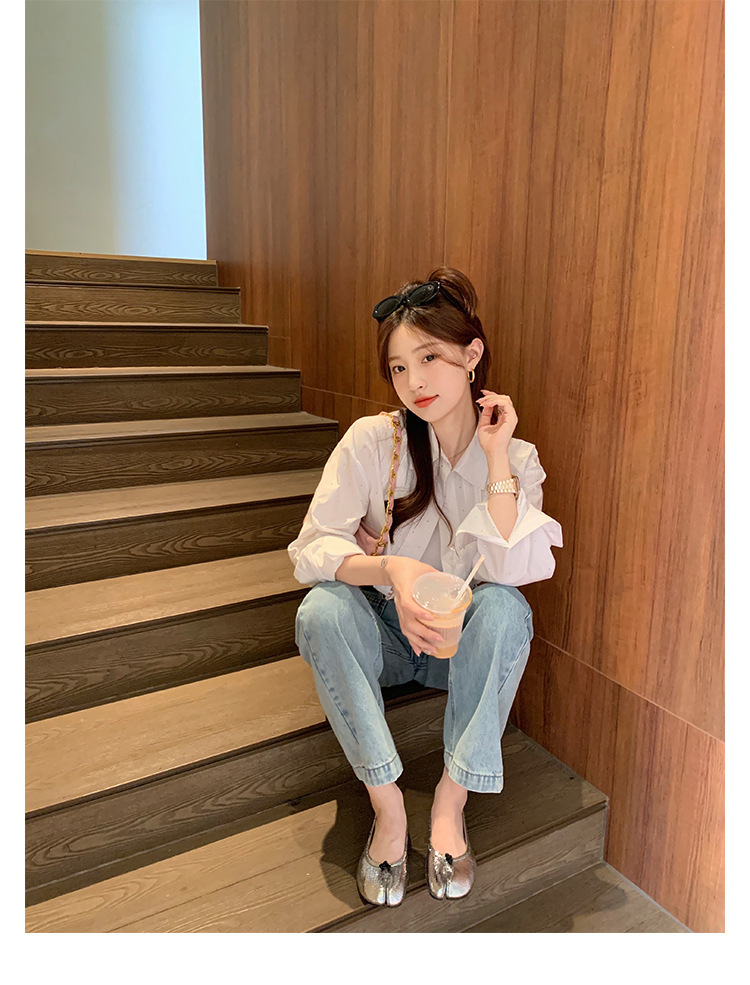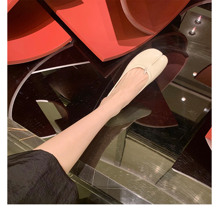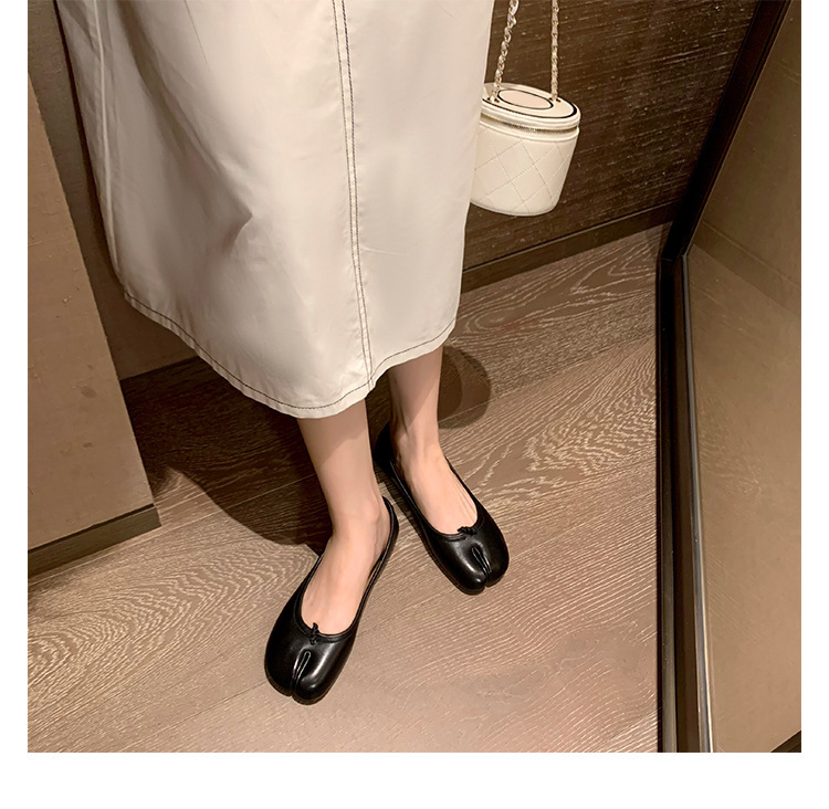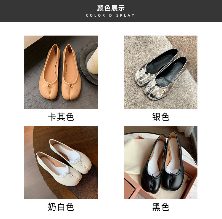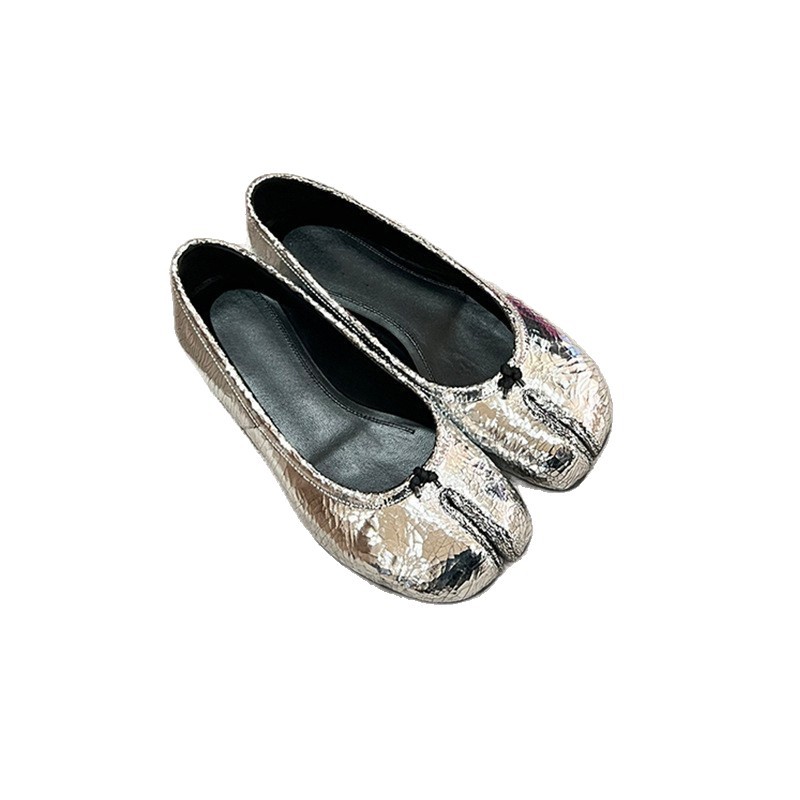 양가죽 버전~여성용 부드러운 밑창 돼지발톱 스플릿 토 슈즈, 천연가죽 펌프스 플랫 여성용 싱글 슈즈, 실버 메리제인 작은 가죽 슈즈
