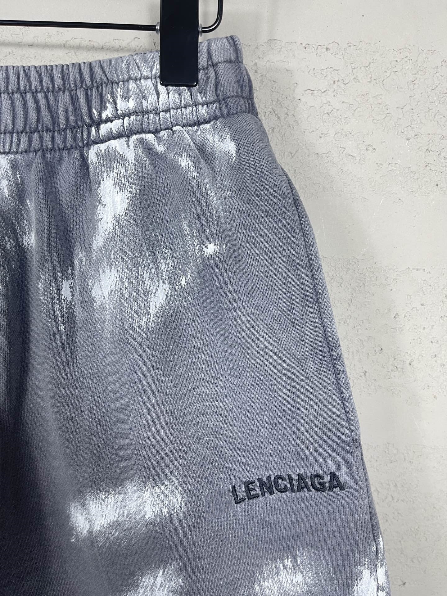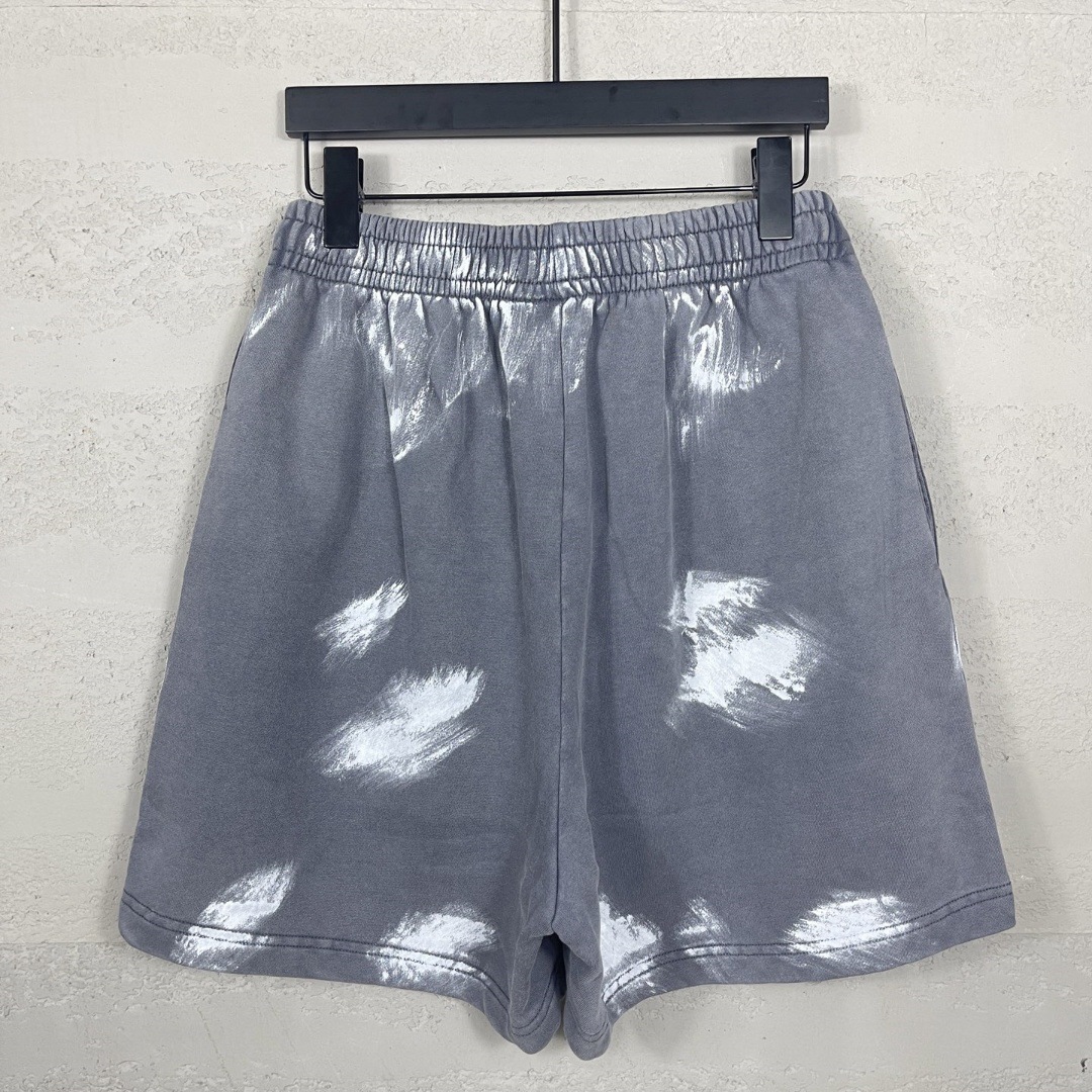 파리 하이 버전 B 2025 새로운 문자 로고 자수 워시 올드 마모 손으로 그린 낙서 남성용 반바지