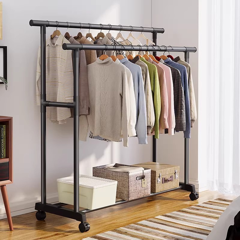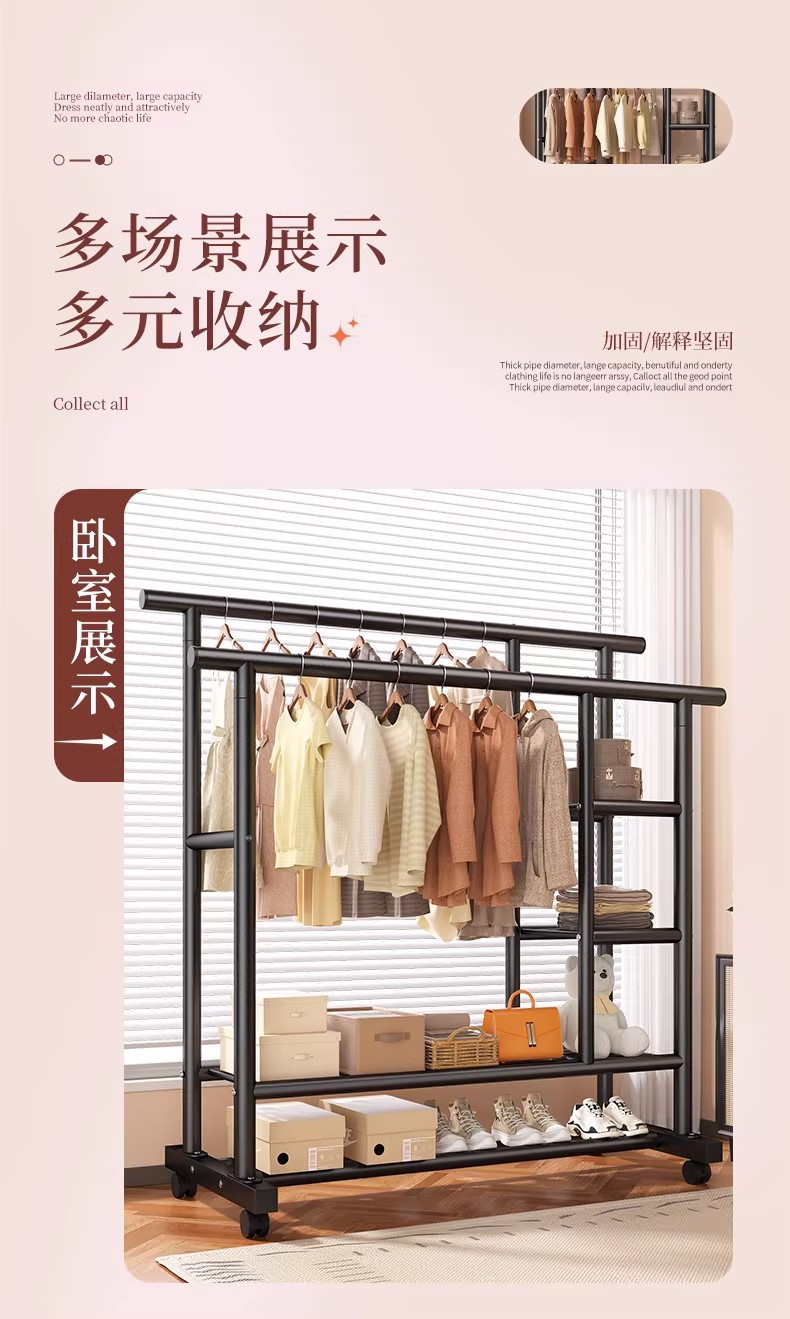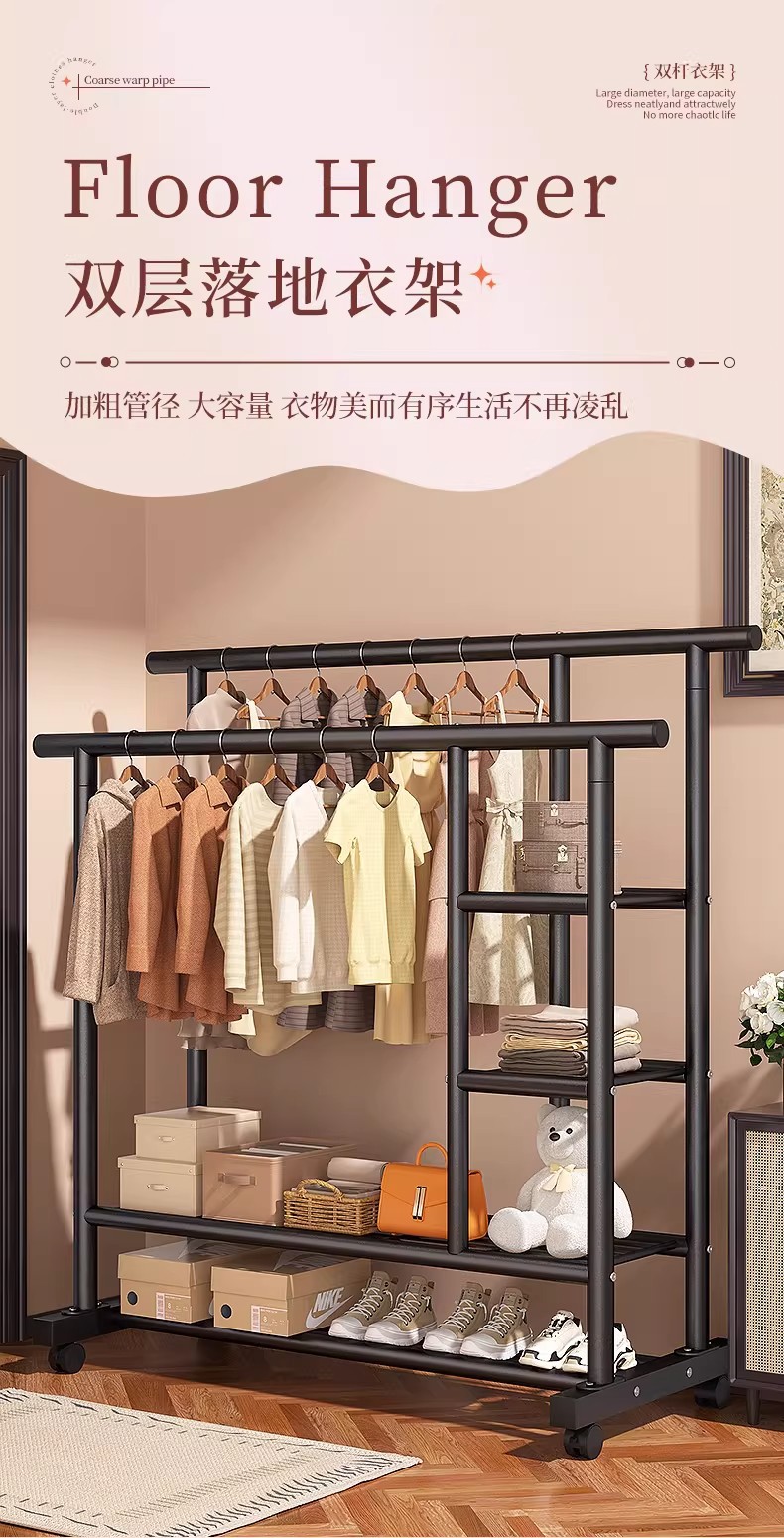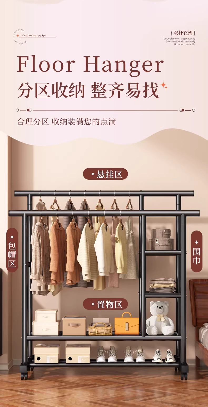 실내 바닥부터 천장까지 가정용 침실 옷걸이용 철제 두꺼운 옷걸이, 단일 막대 이동식 옷걸이 및 모자 걸이 도매