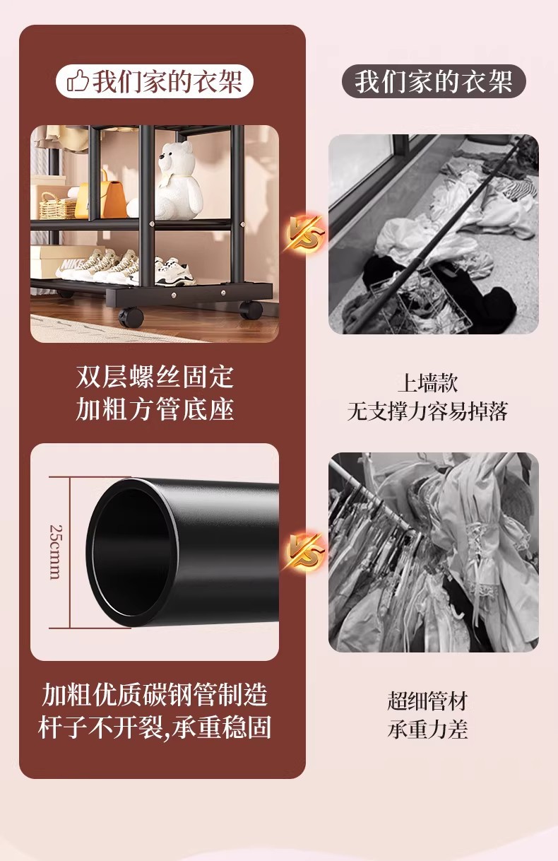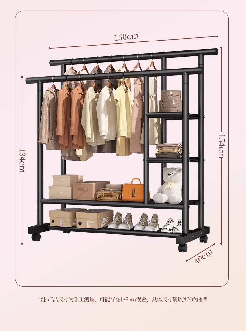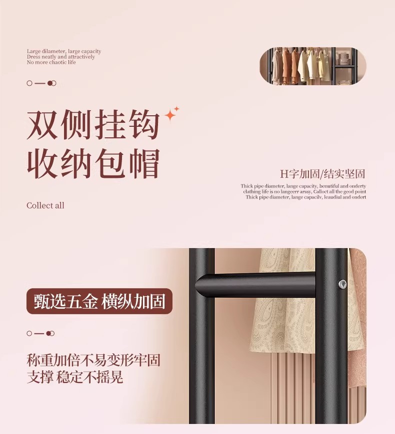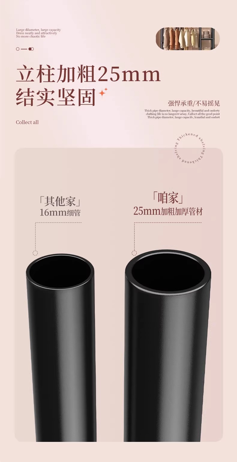 실내 바닥부터 천장까지 가정용 침실 옷걸이용 철제 두꺼운 옷걸이, 단일 막대 이동식 옷걸이 및 모자 걸이 도매