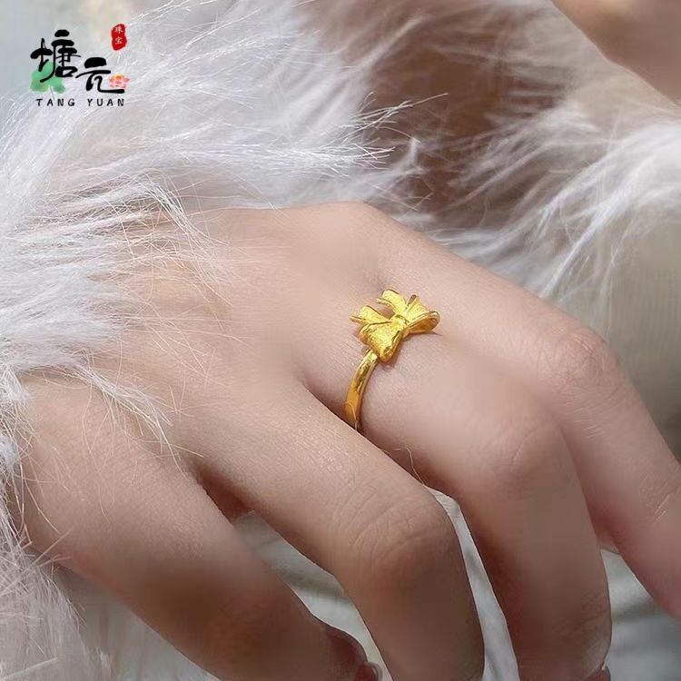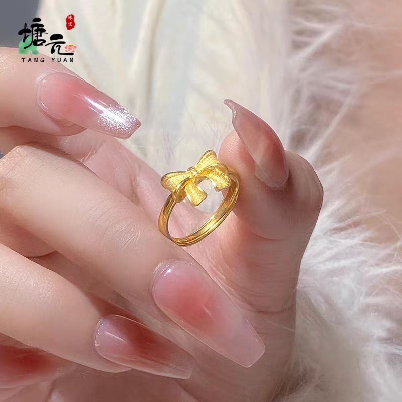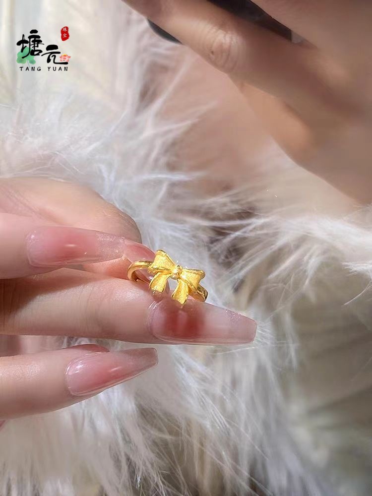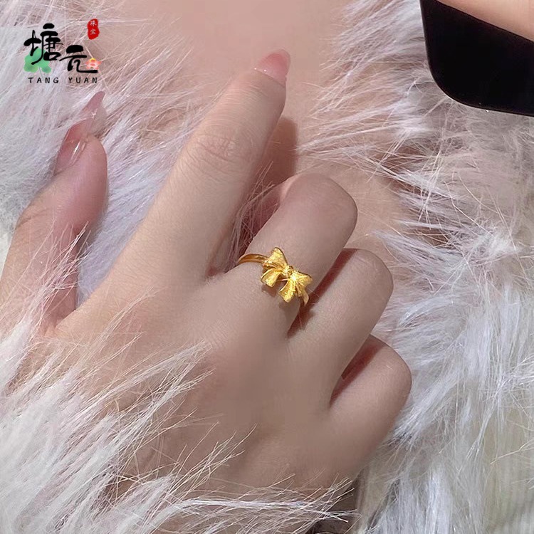 샌드 골드 보우 링, 금상점의 동일한 스타일, 도망자 공주 시리즈, 여성용 라이브 링, 다재다능한 기질의 핸드 액세서리
