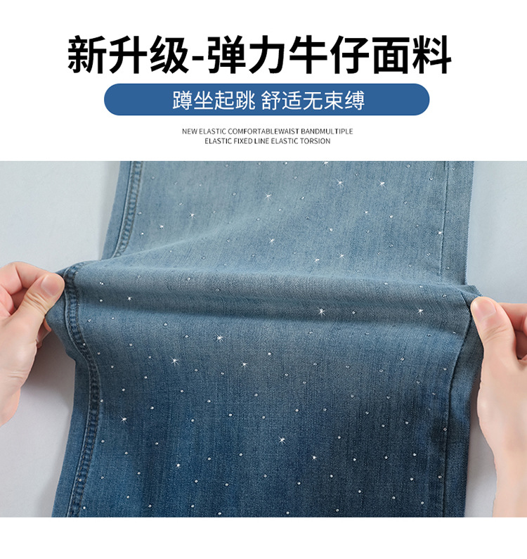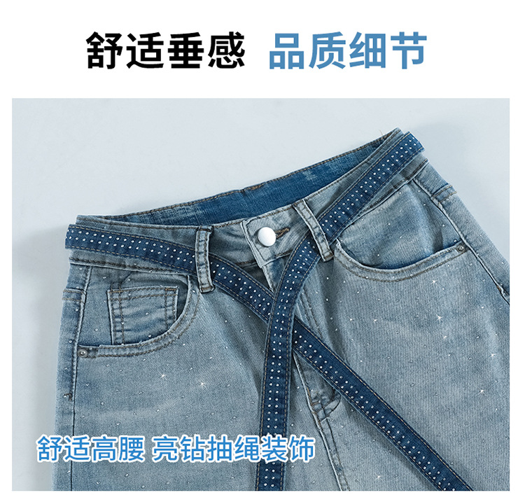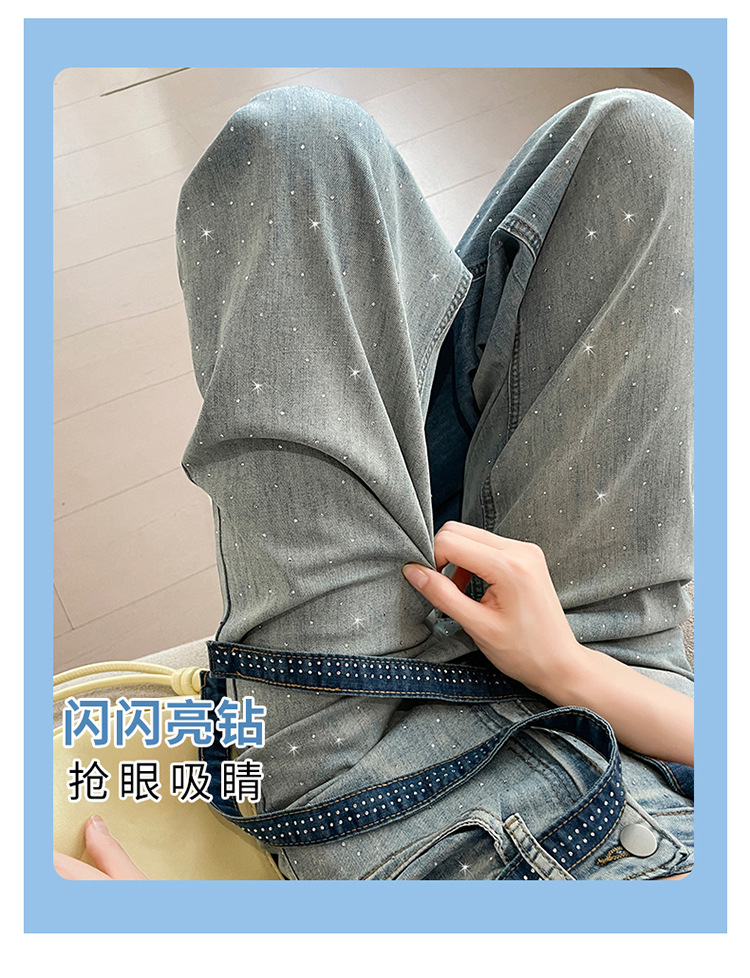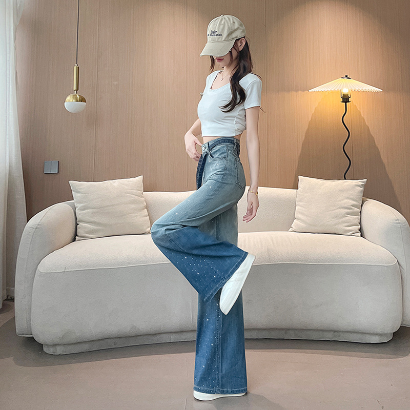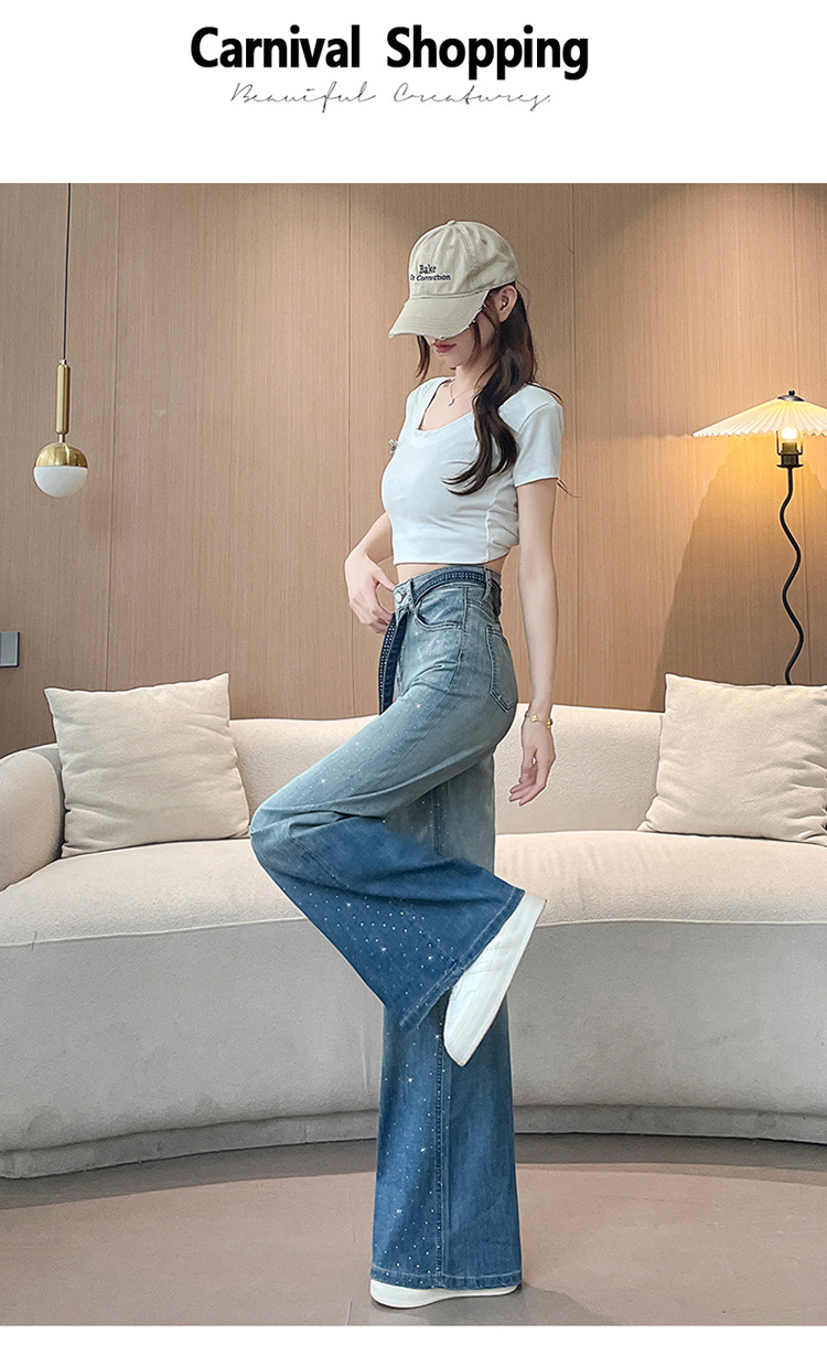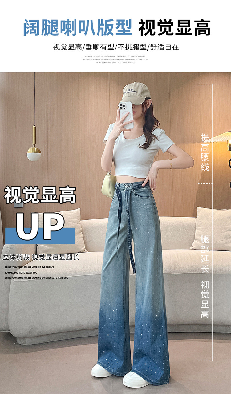 여성을위한 그라디언트 컬러 핫 다이아몬드 스트레이트 청바지 2025 여름 얇은 드로우 스트링 하이 웨이스트 슬리밍 드레이프 와이드 레그 바닥 길이 바지