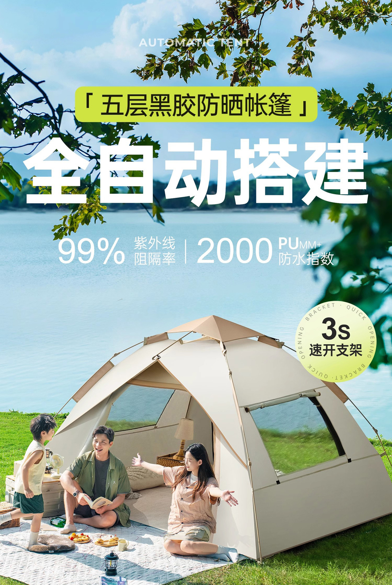 야외 텐트 야외 접이식 휴대용 빠른 개방형 공원 피크닉 캠핑 밤새도록 두꺼운 방수 및 자외선 차단 텐트