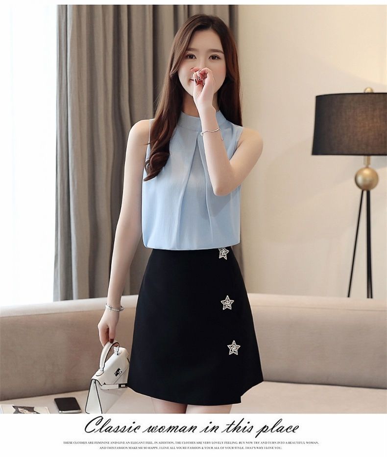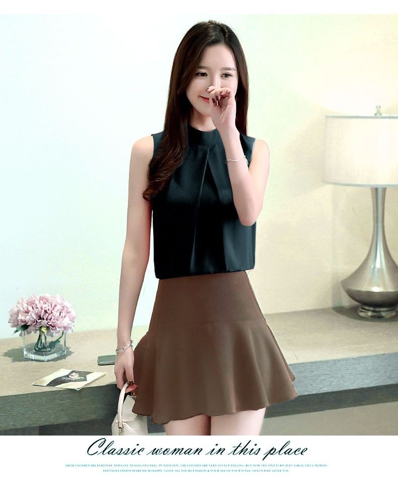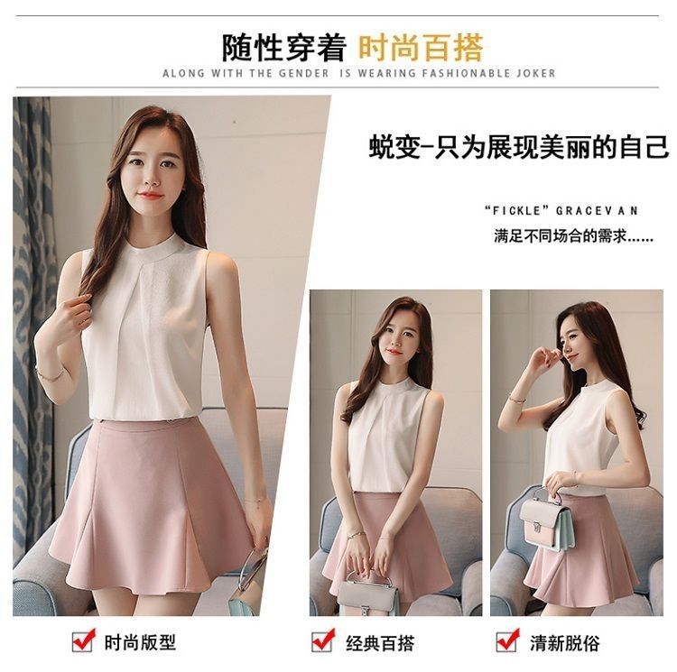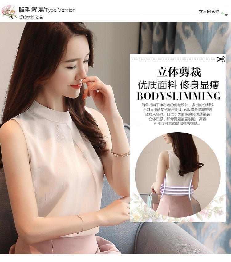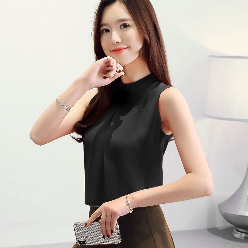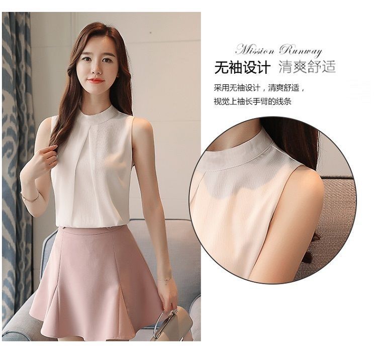 여성용 화이트 민소매 셔츠 여름 한국 스타일 슬림 OL 전문 통근 라운드 넥 셔츠 쉬폰 탑 베이스