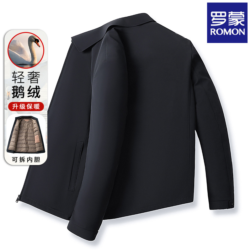 [구스다운 탈착식 라이너] 로몬 쇼트 다운 재킷 남성 2025 겨울 두꺼운 따뜻한 재킷 간부복
