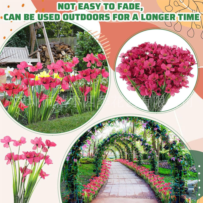 국경 간 시뮬레이션 녹색 식물 5 봄 잔디 보라색 인공 플라스틱 가짜 꽃 안티 UV 정원 홈 장식