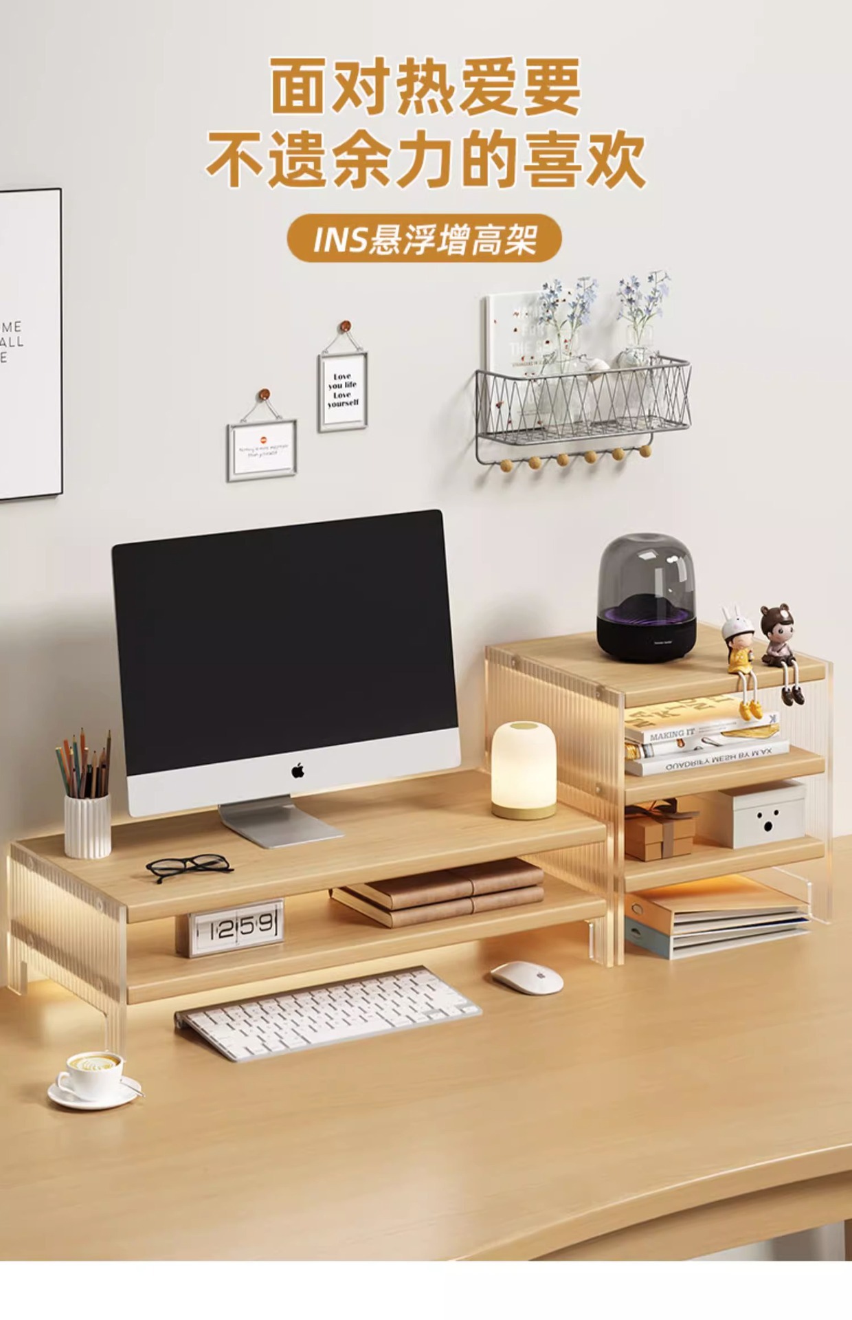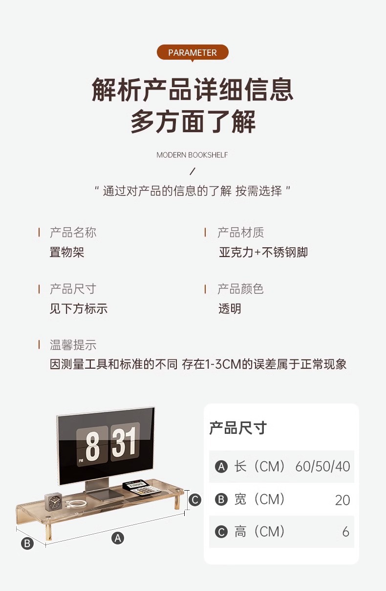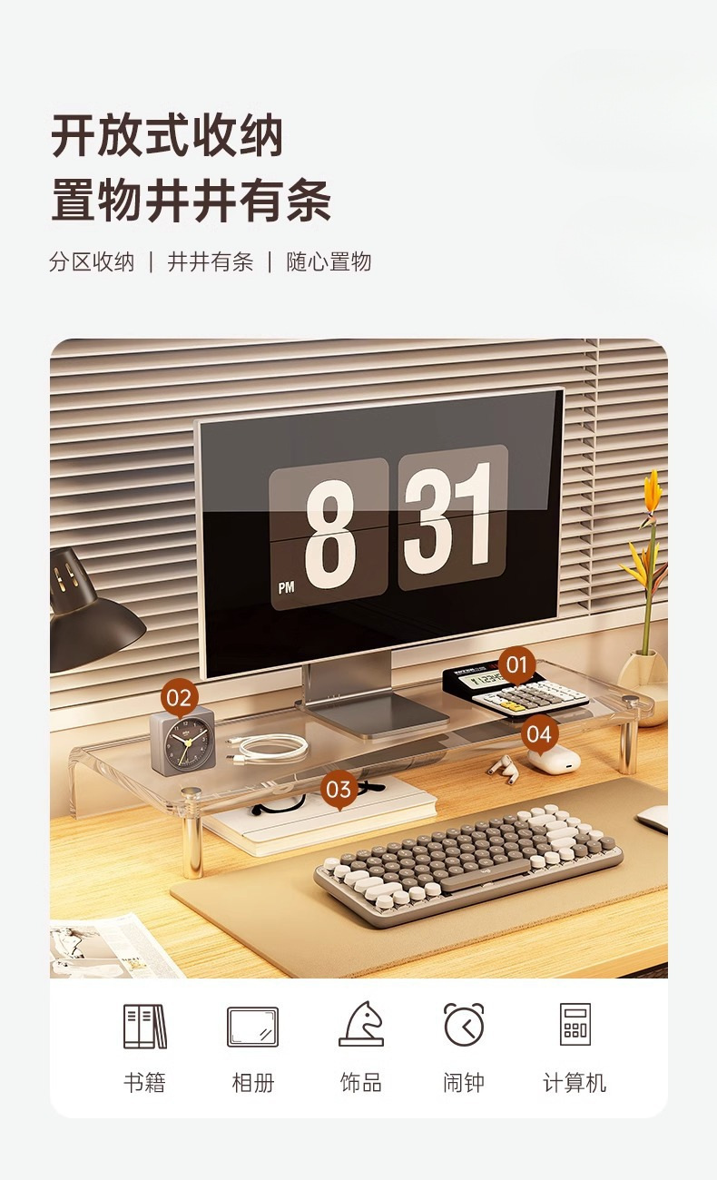 홈 오피스 노트북 스탠드 아크릴 모니터 컴퓨터 스탠드 데스크탑 데스크탑 스토리지 랙