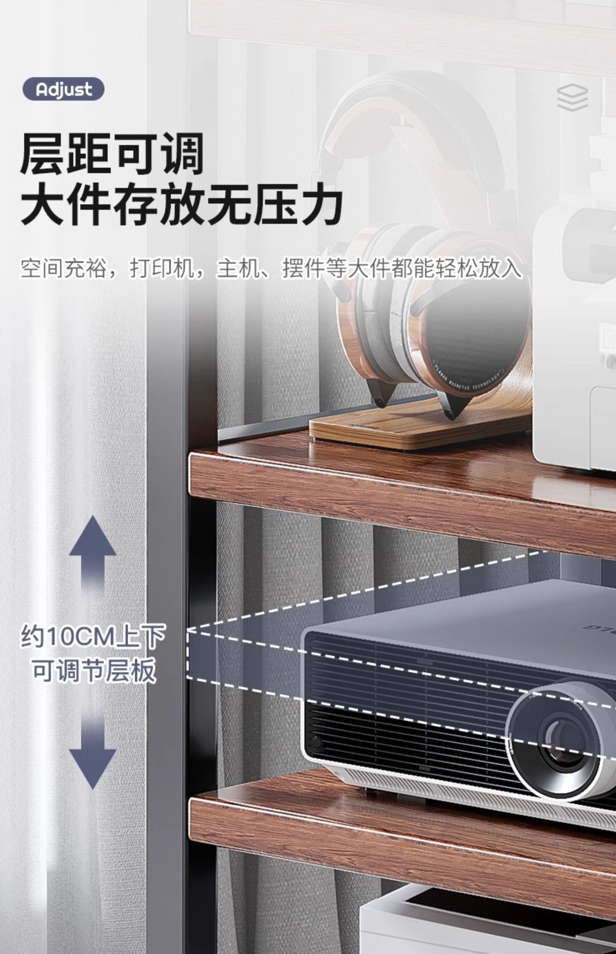 [플래그십 모델 2레이어 - 업그레이드된 볼드함과 두께 - 2단계 조절 가능한 레이어 간격 55-65cm] 다크 월넛 + 블랙 프레임★