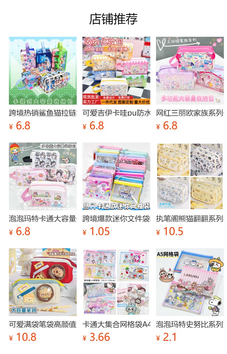 상어 고양이 산리오 시리즈 만화 그리드 가방 B6 젤 펜 문구 데스크탑 편리한 정리 및 보관 연필 가방