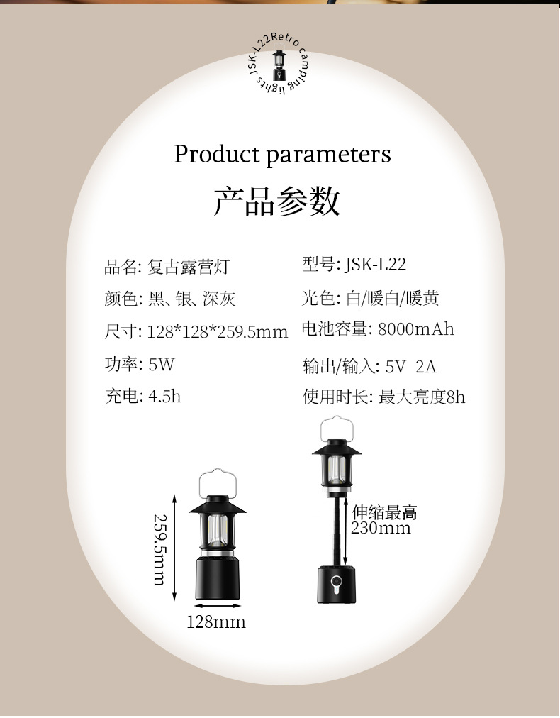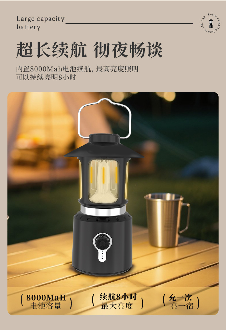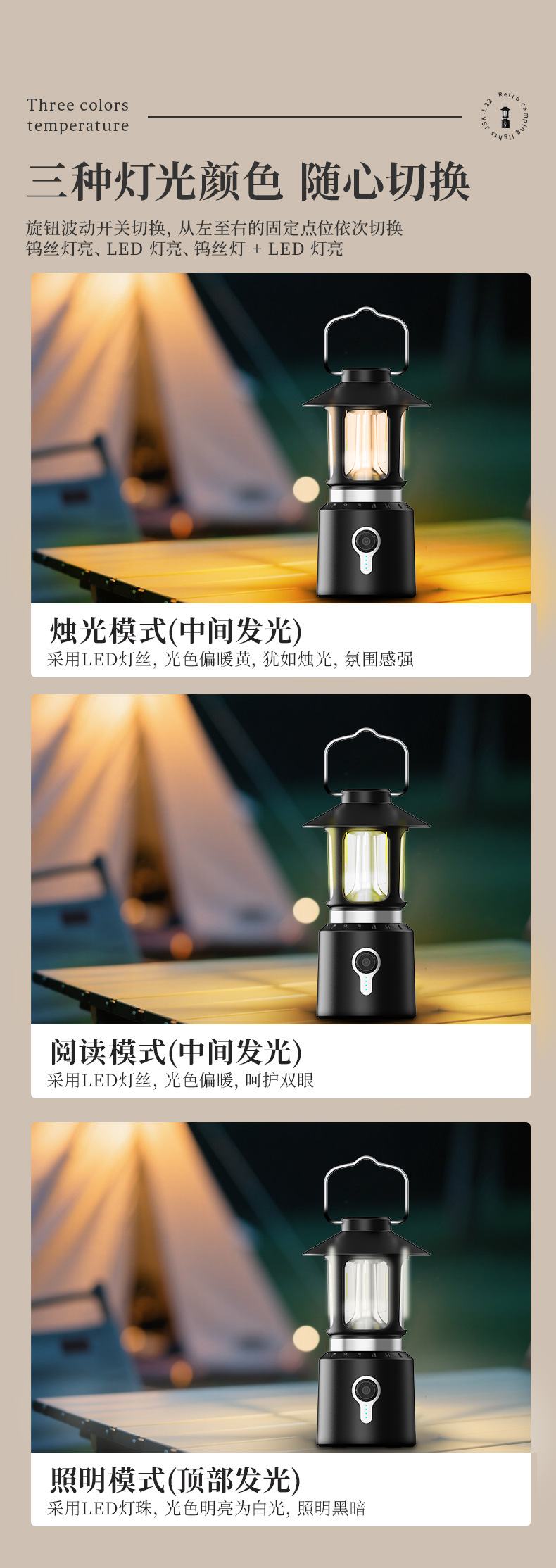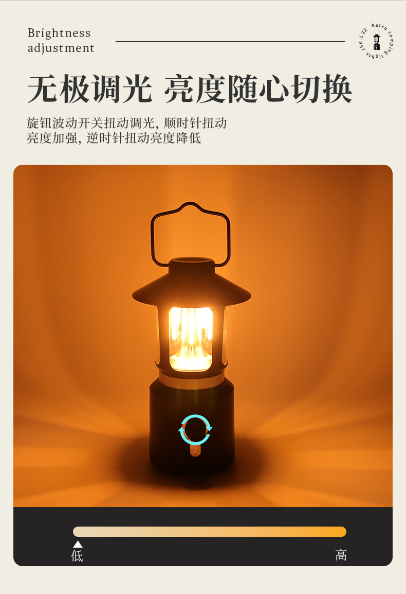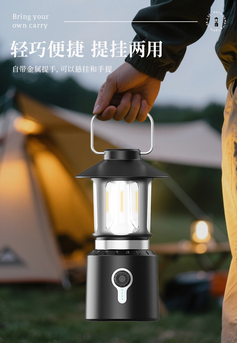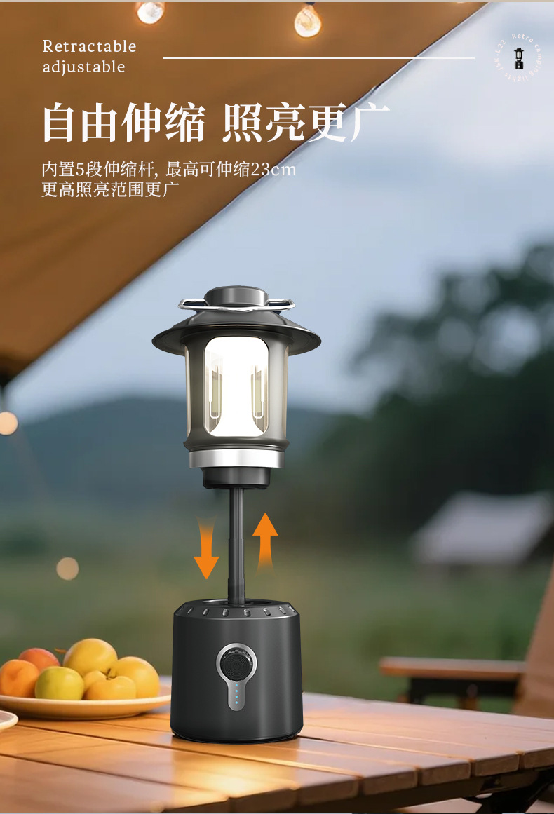 리프팅 가능한 복고풍 캠핑 램프, 야외 캠핑 캐노피 교수형 램프, 휴대용 캠프 텐트 램프, LED 이중 광원 말 랜턴