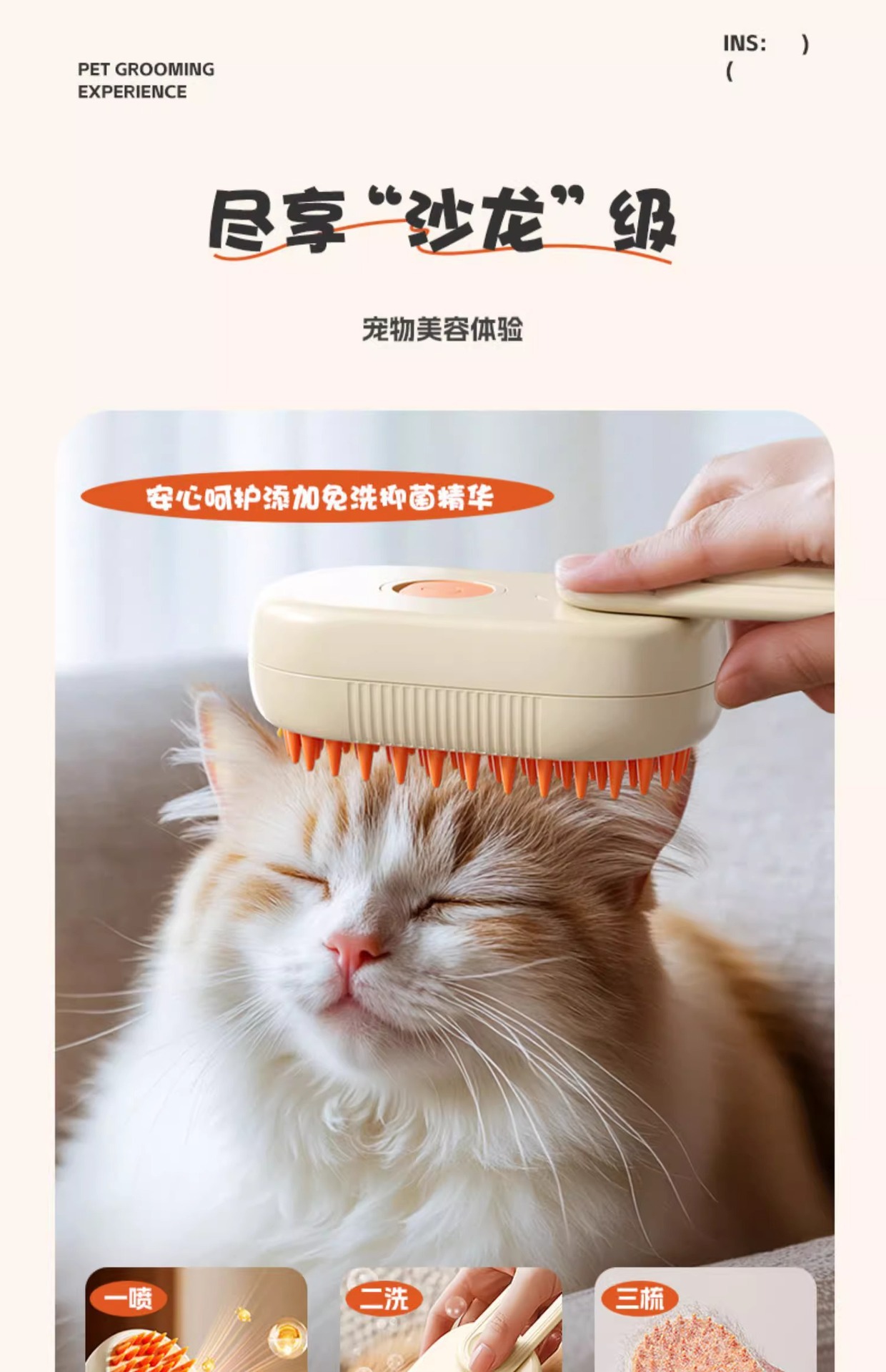 애완동물 스프레이 마사지 빗, 고양이와 강아지 빗질용 특수 스팀 빗, 고양이 목욕 및 털 제거 도구