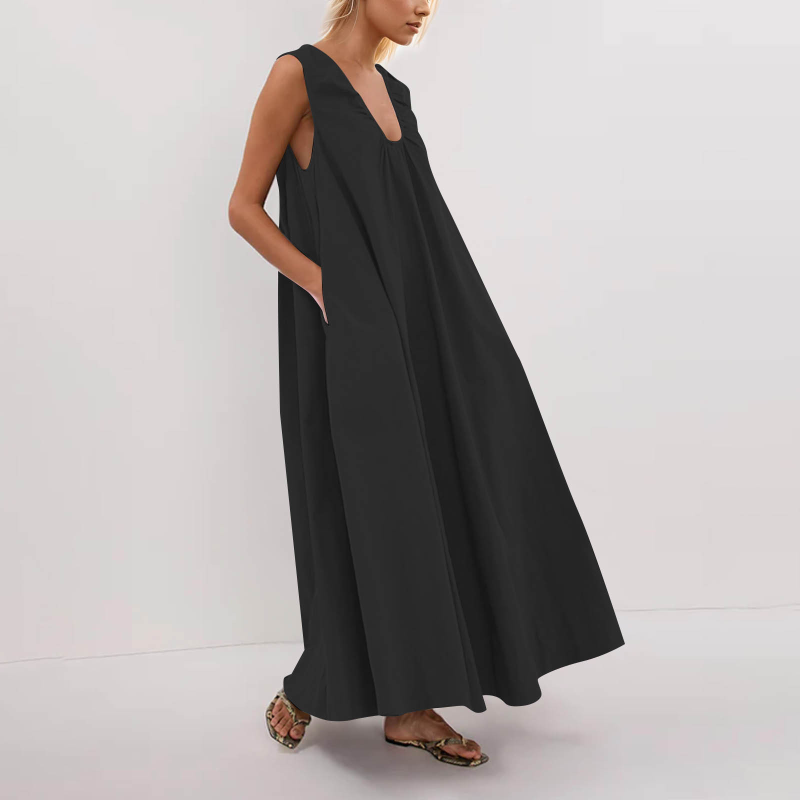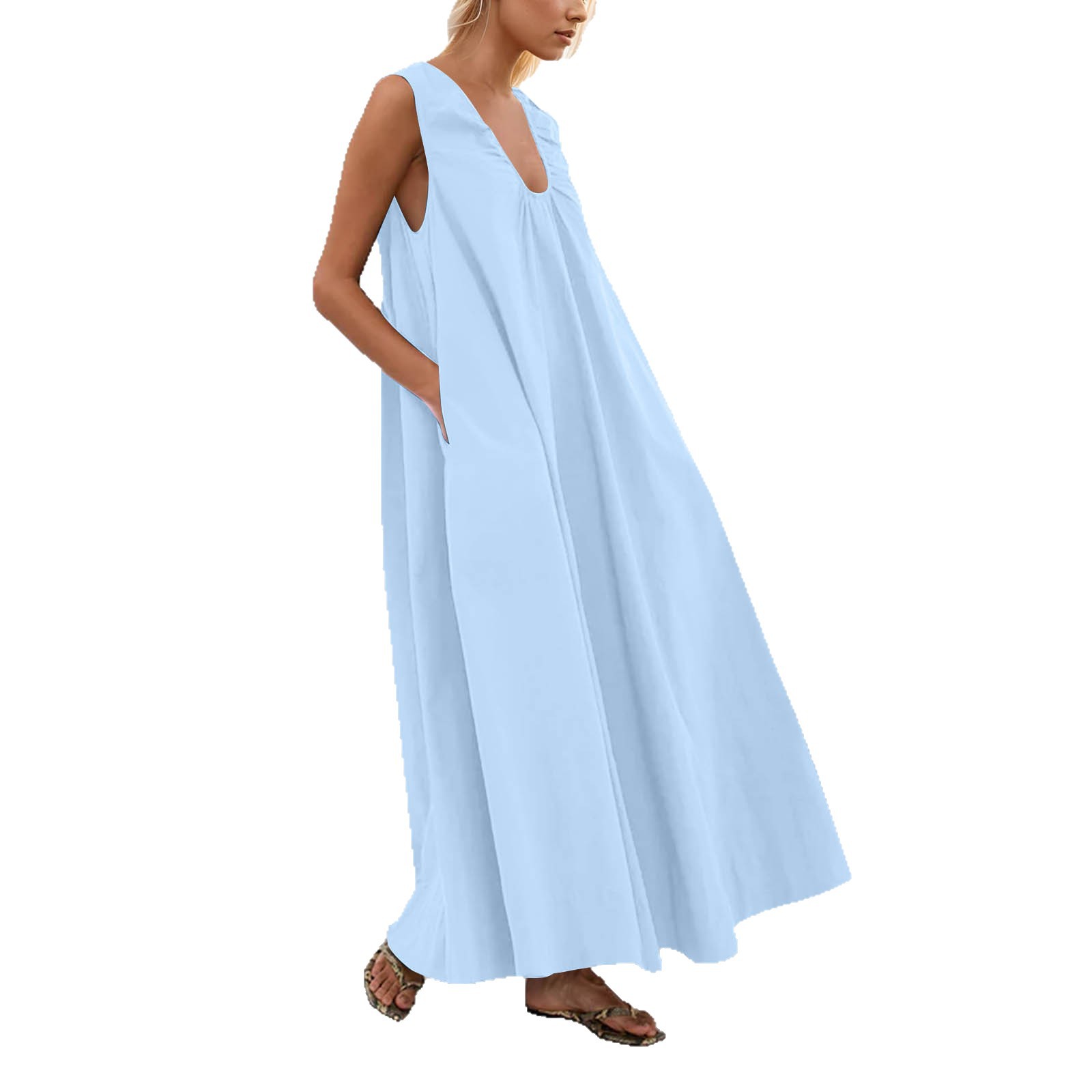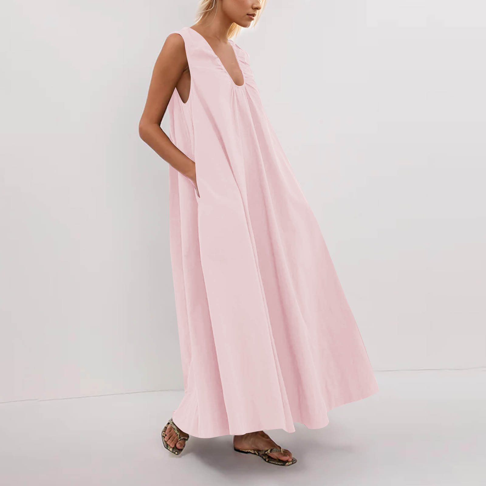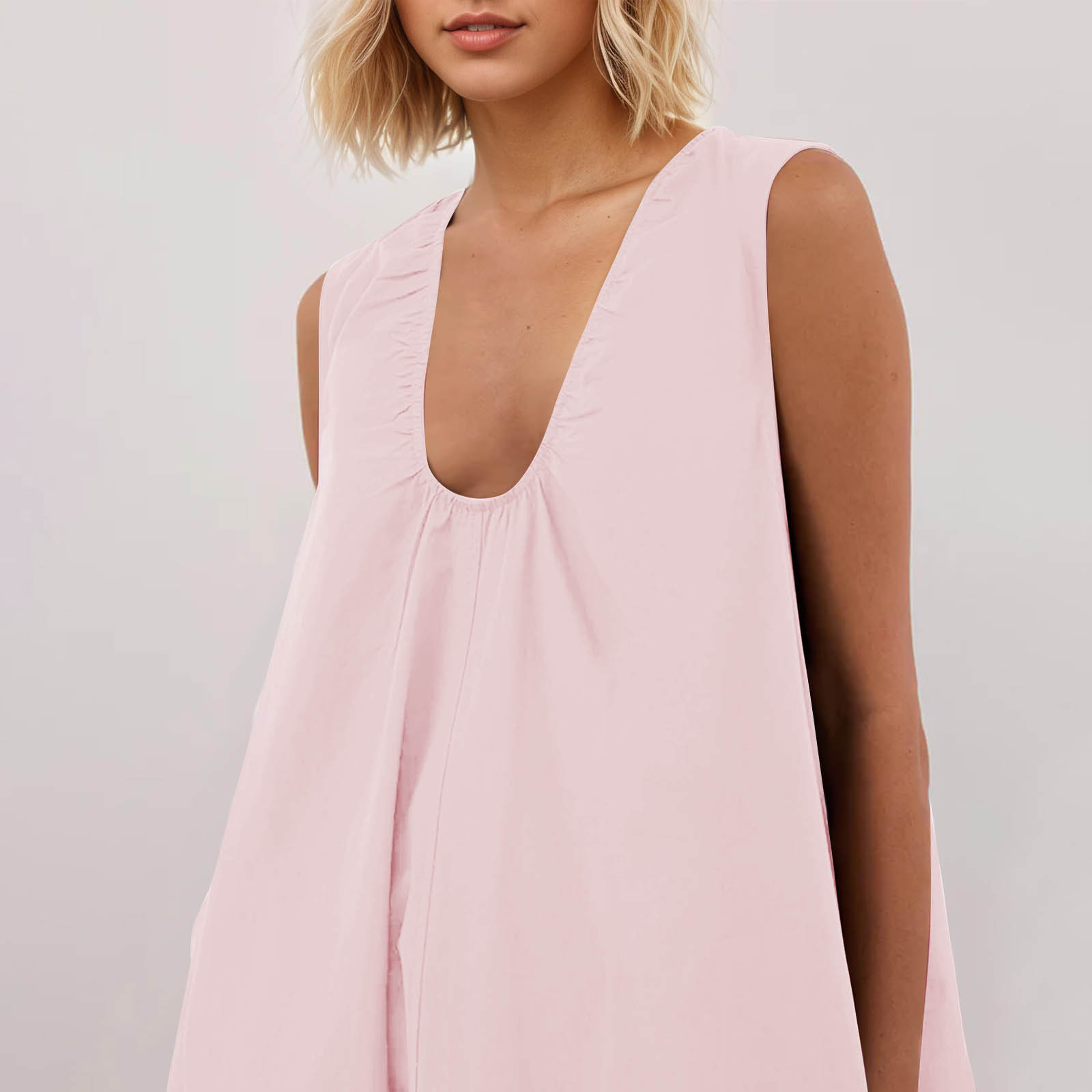 여성을위한 북유럽 틈새 VC 새 조끼 2025 봄, 여름 넓은 어깨 끈 주름 v 넥 민소매 풀오버 화이트 드레스
