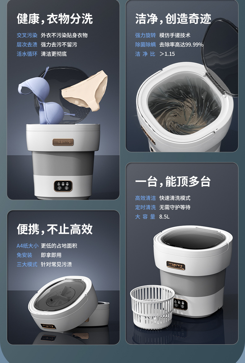 탈수 가능한 속옷과 양말을 위한 국경 간 접이식 세탁기, 가정용 기숙사용 소형 세탁기, 휴대용 청소 도구